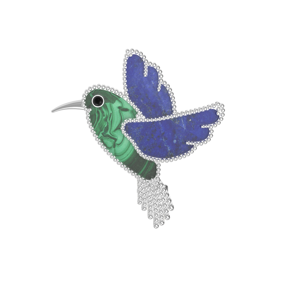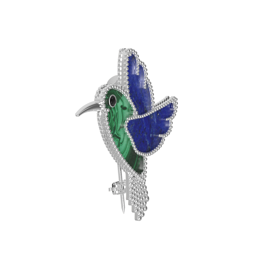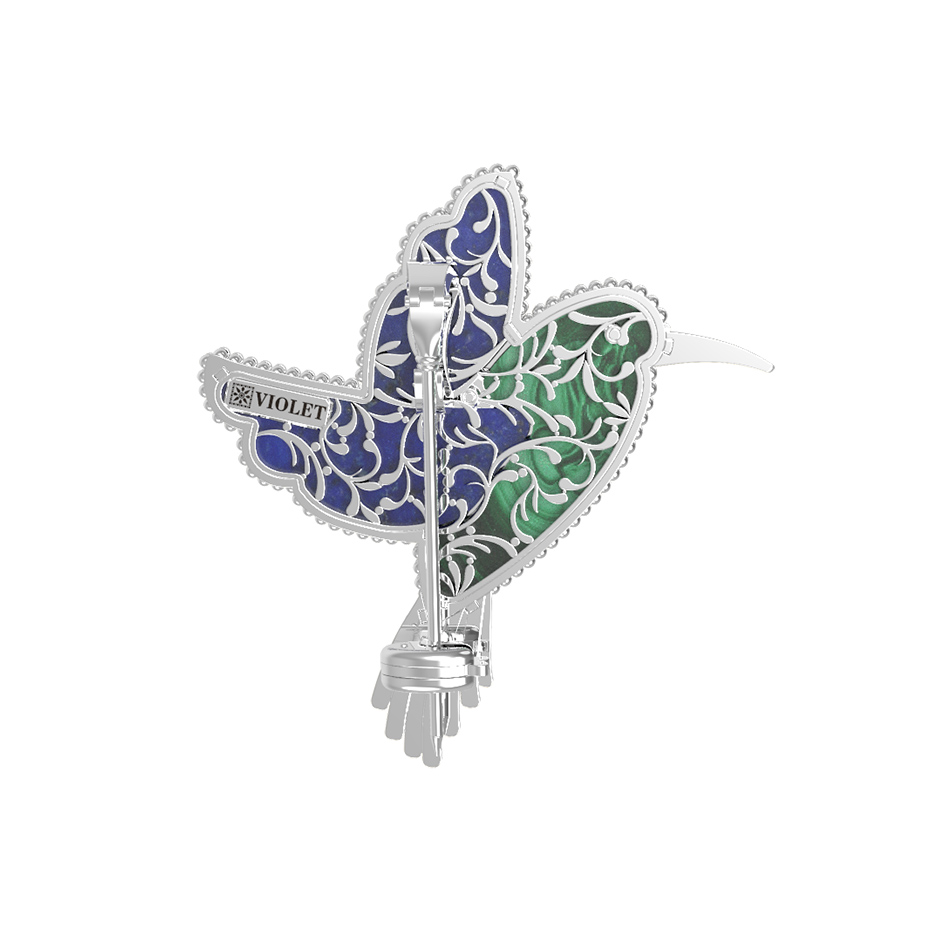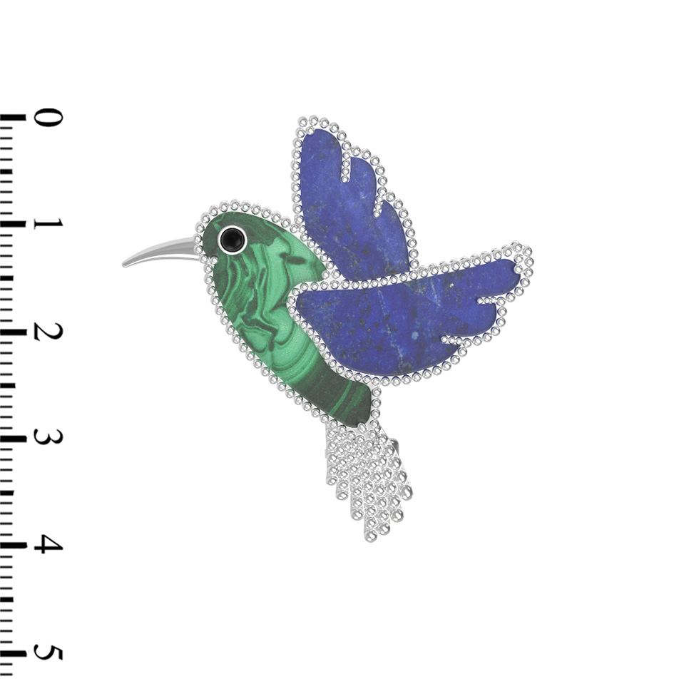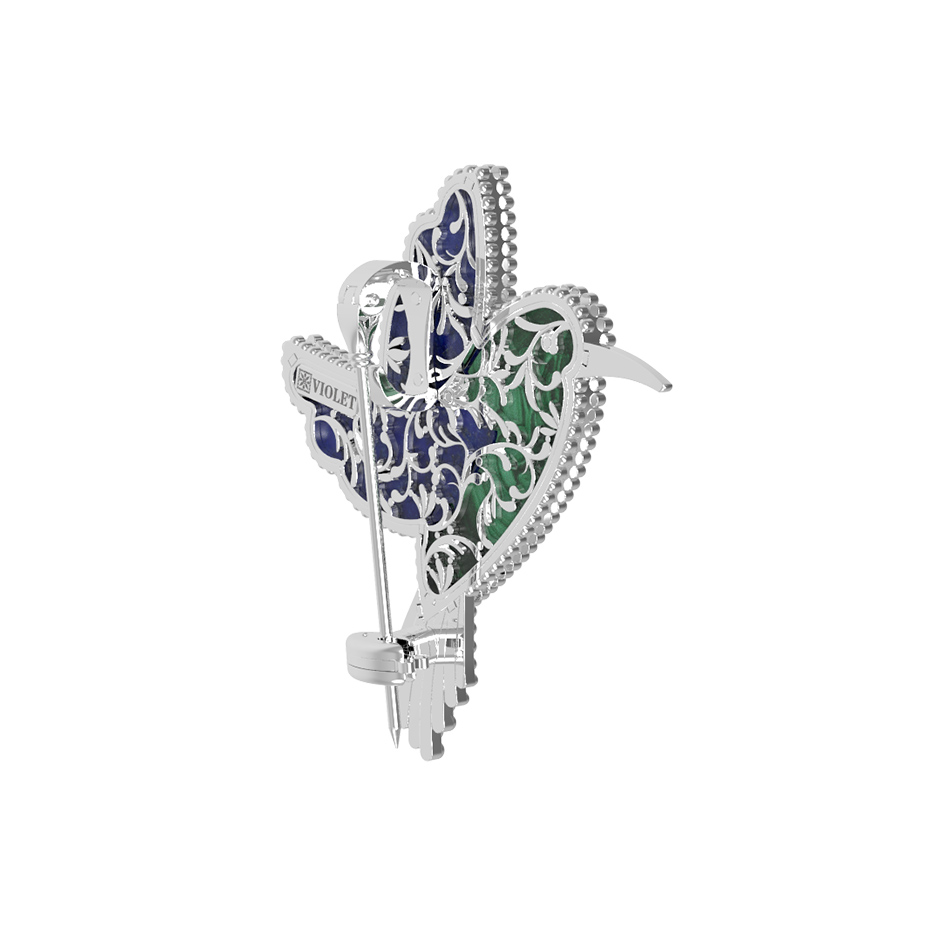Брошь-подвеска из белого золота 585 пробы c эмалью, лазуритом и малахитом
