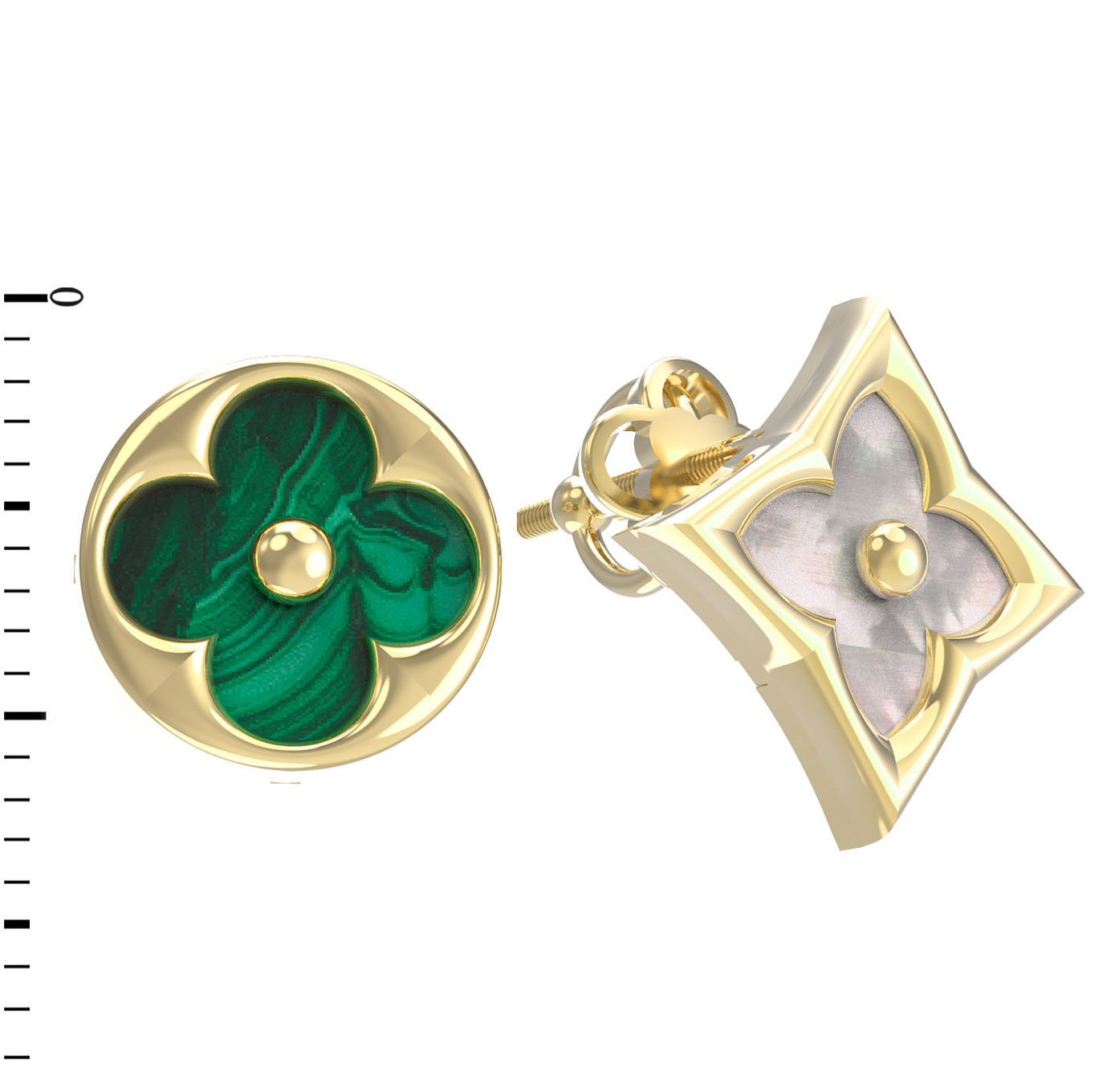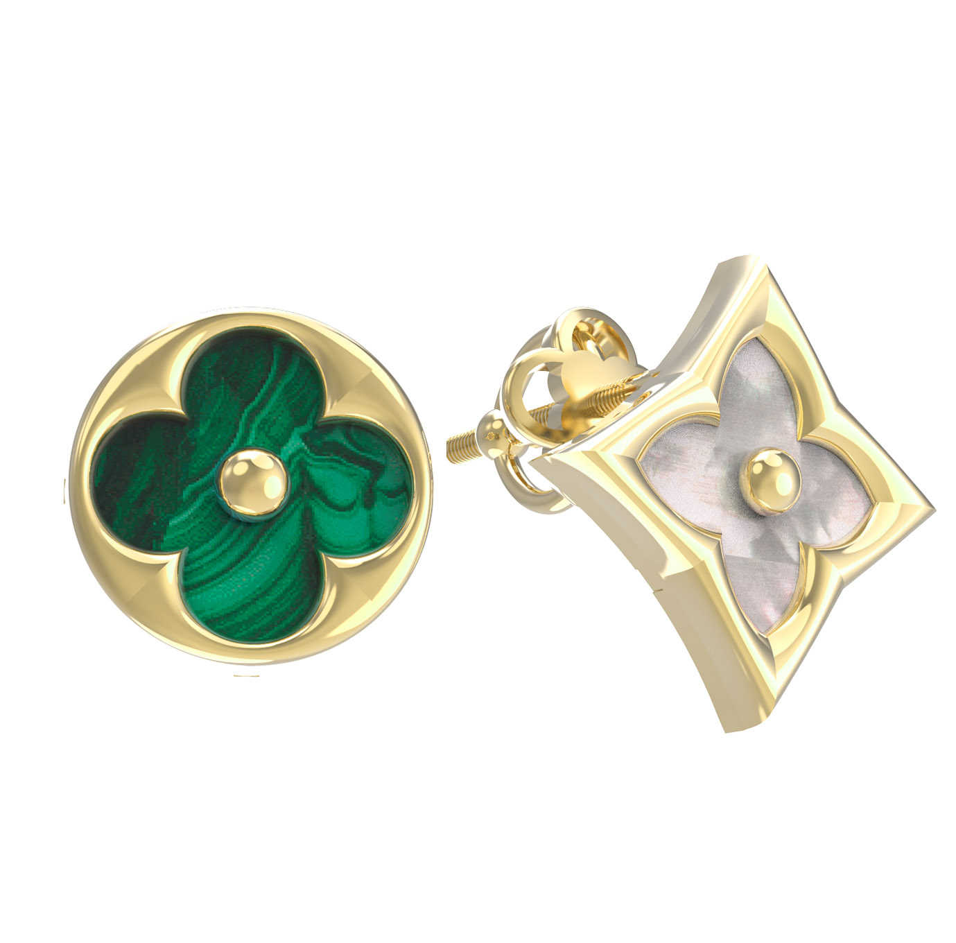 Серьги из лимонного золота 585 пробы c малахитом и перламутром