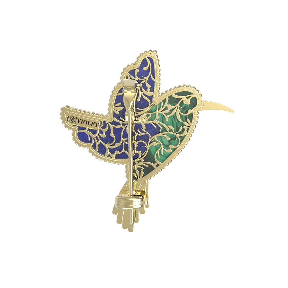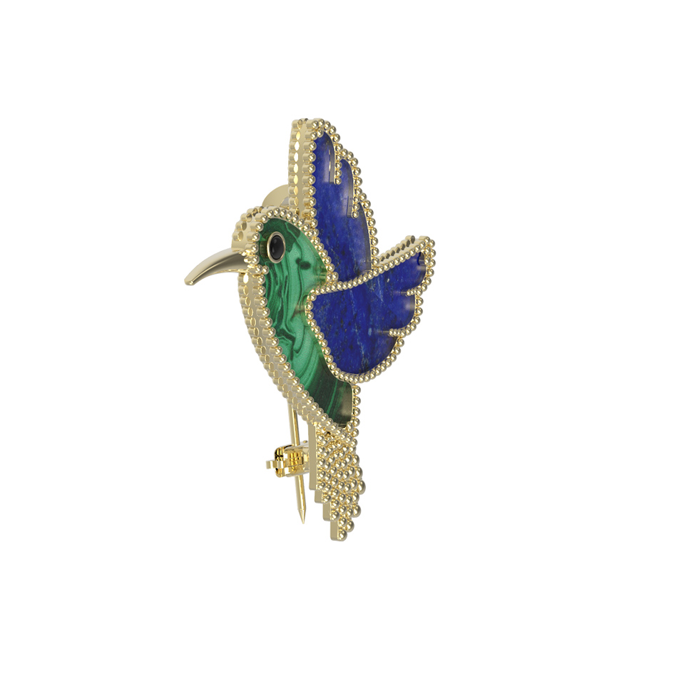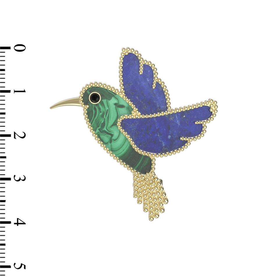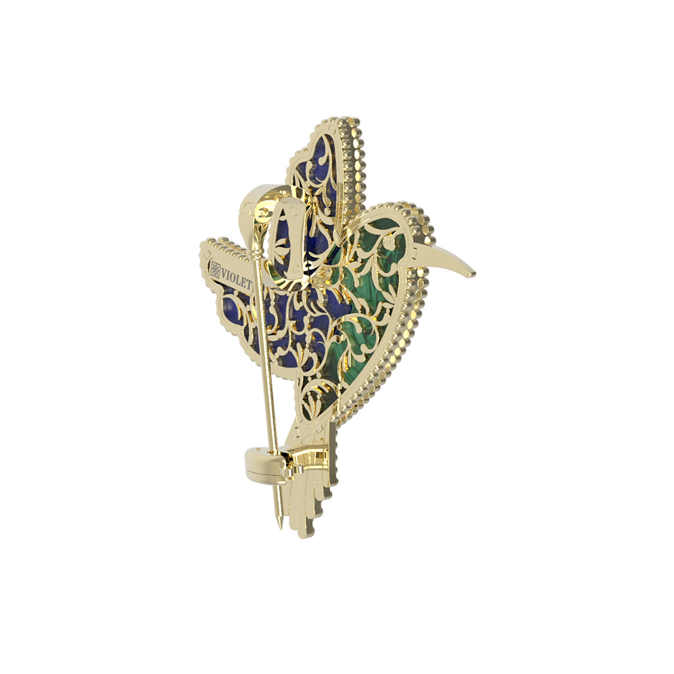 Брошь-подвеска из лимонного золота 585 пробы c эмалью, лазуритом и малахитом