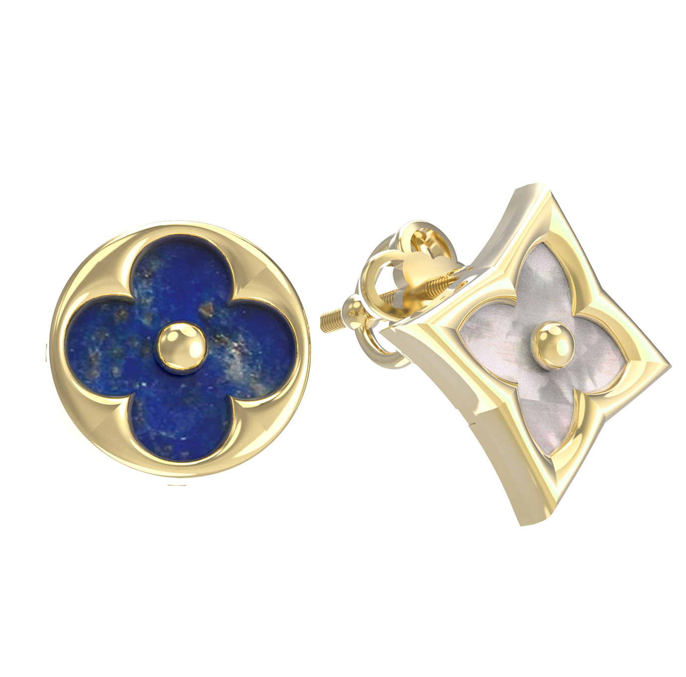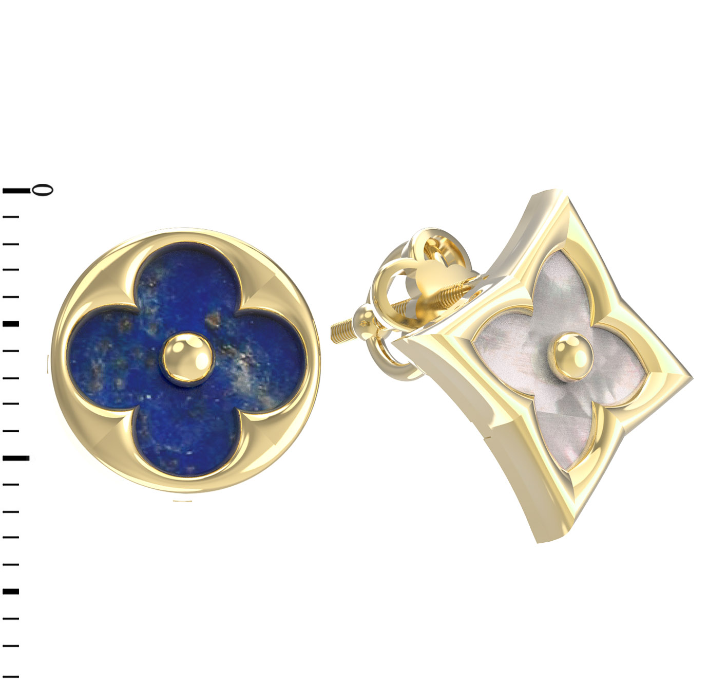 Серьги из лимонного золота 585 пробы c лазуритом и перламутром