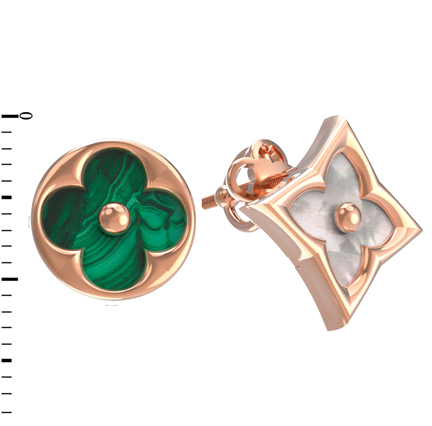 Серьги из красного золота 585 пробы c малахитом и перламутром