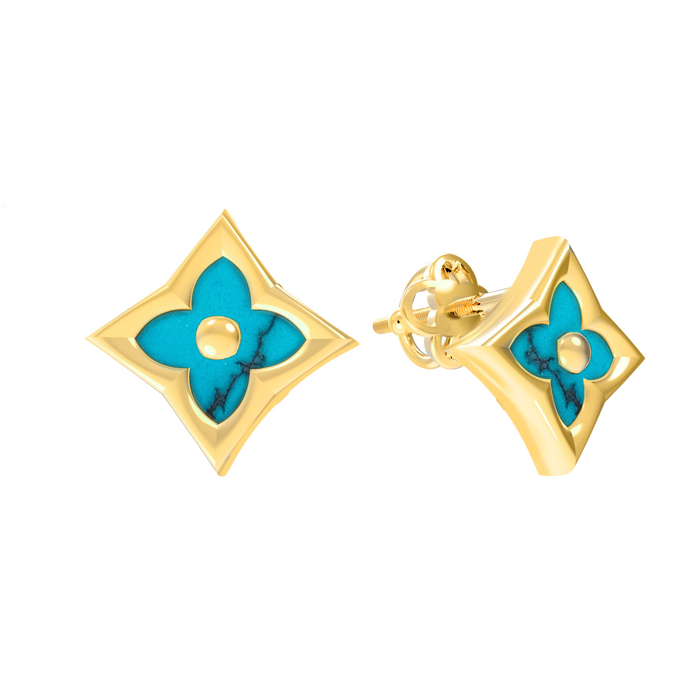 Серьги из лимонного золота 585 пробы c бирюзой