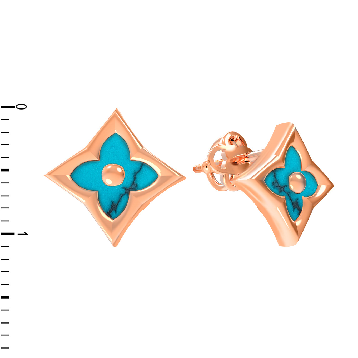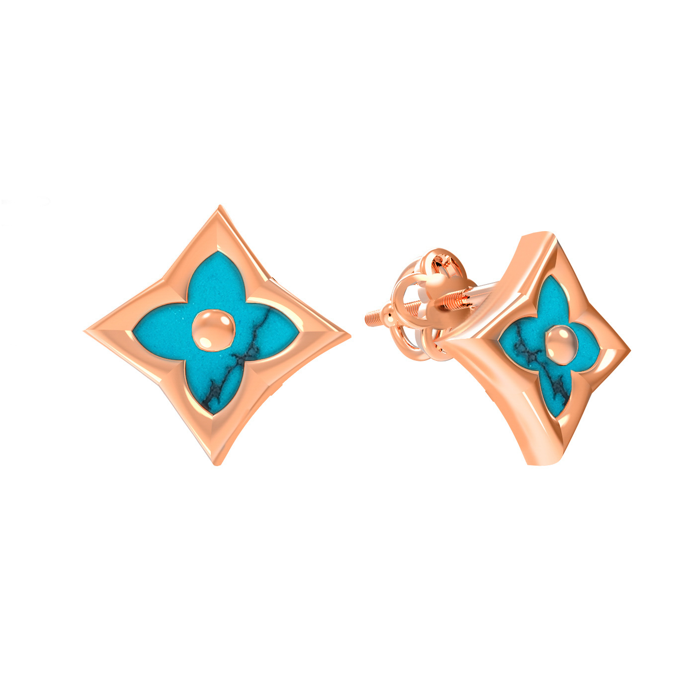 Серьги из красного золота 585 пробы c бирюзой