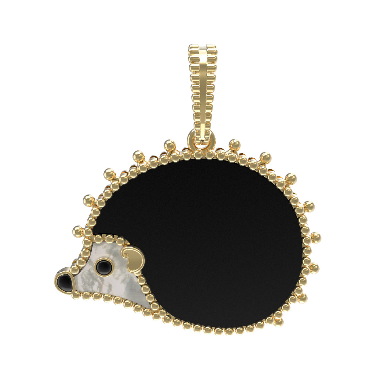 Оригинальная подвеска в виде очаровательного ёжика из коллекции De Luxe — В стране чудес станет ярким акцентом в вашем ювелирном гардеробе. Изделие выполнено из высококачественного лимонного золота 585 пробы, чей благородный оттенок подчеркивает детализированный дизайн украшения. Мастерское сочетание материалов придает подвеске особую выразительность: тело ёжика инкрустировано глубоким черным ониксом, а его мордочка украшена перламутром с нежным переливом. Акцентные детали проработаны с помощью эмали, создавая гармоничный и стильный образ.