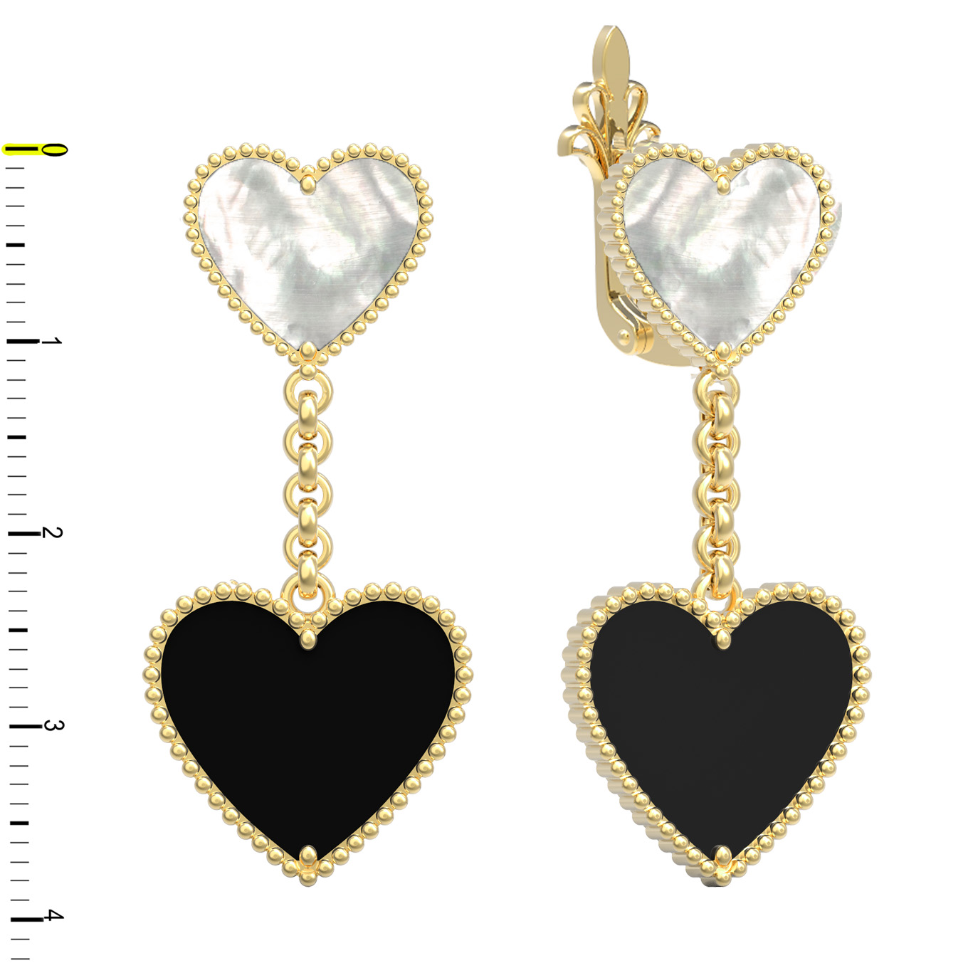 Серьги из лимонного золота 585 пробы c ониксом и перламутром