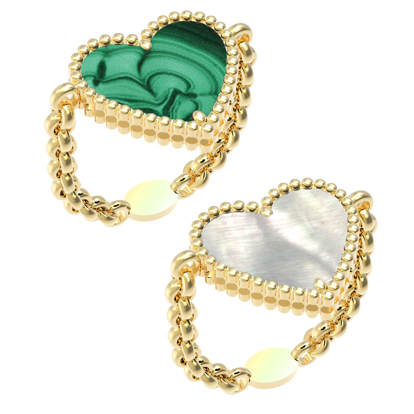 Кольцо из лимонного золота 585 пробы c малахитом и перламутром