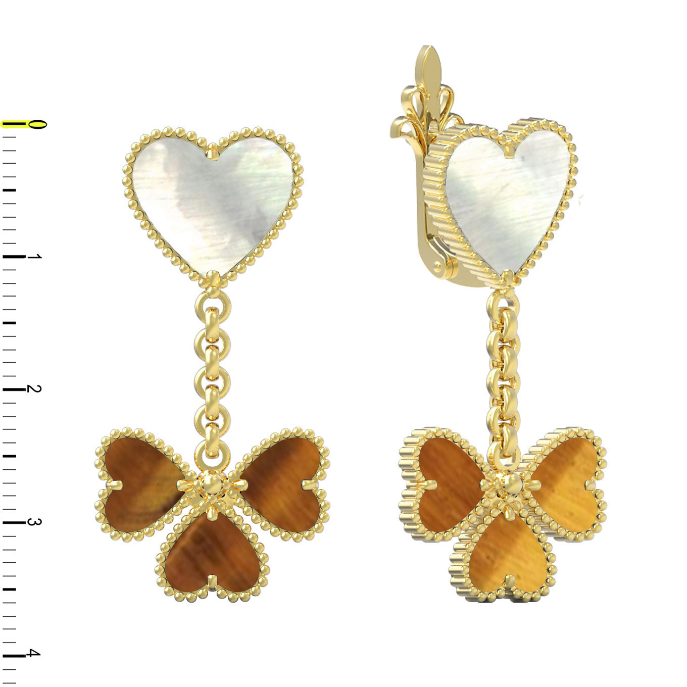 Серьги из лимонного золота 585 пробы c тигровым глазом и перламутром