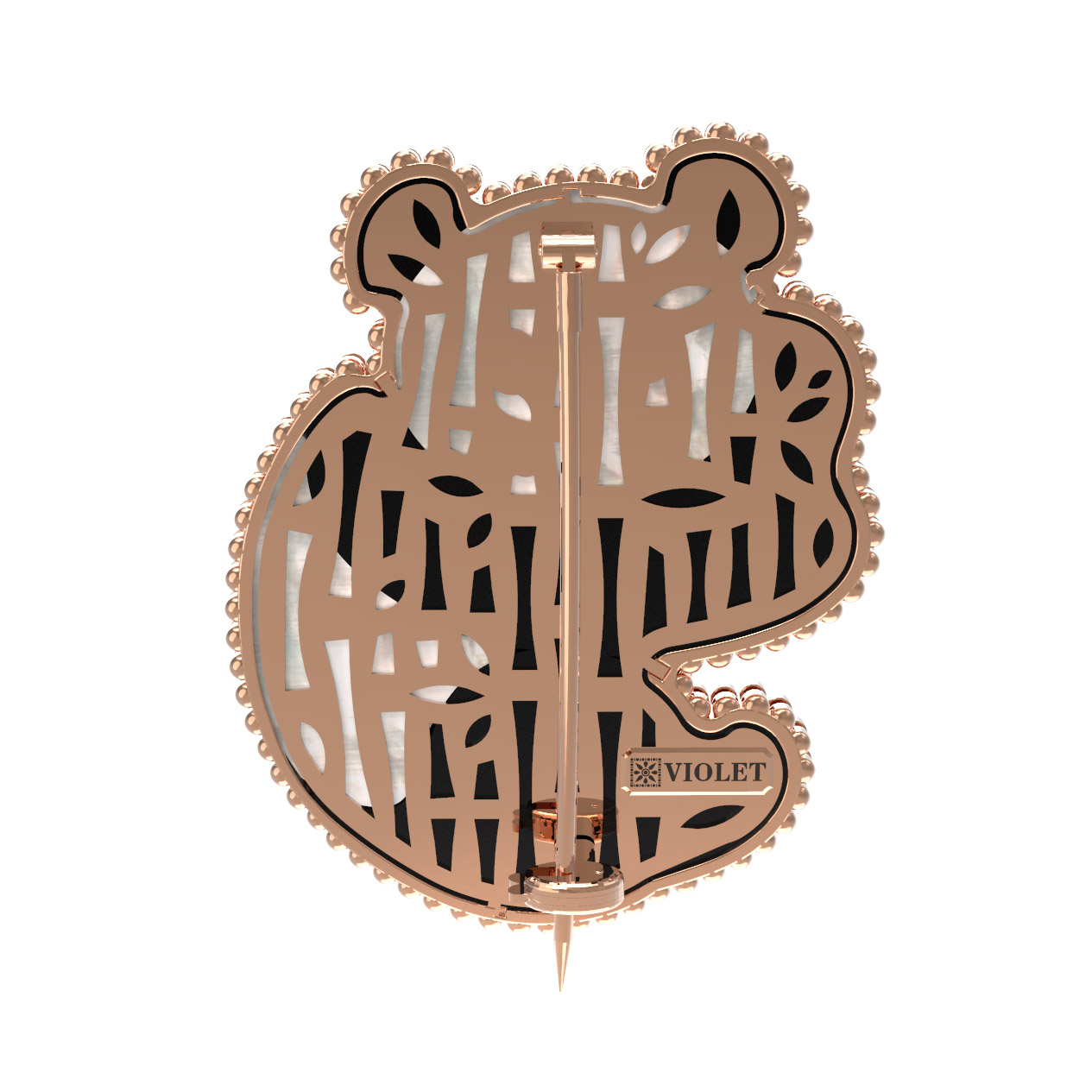 Ювелирная брошь Панда из коллекции De Luxe — В стране чудес — это утонченный аксессуар, сочетающий в себе искусство дизайна и мастерство работы с драгоценными материалами. Изделие выполнено из красного золота 585 пробы, которое придает украшению теплый и благородный оттенок. Изящный силуэт панды мастерски проработан в деталях: выразительный контраст создан благодаря сочетанию черного оникса и нежного перламутра. Дополняет композицию ювелирная эмаль, подчеркивающая глубину и чистоту образа.