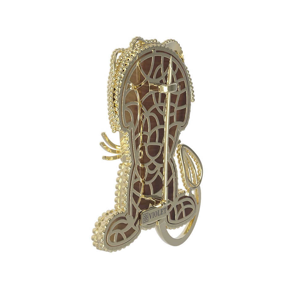 Брошь из лимонного золота c эмалью и тигровым глазом