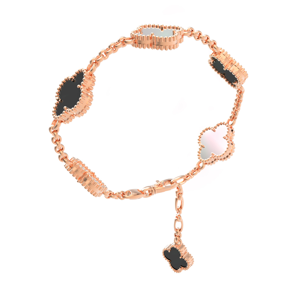 Браслет из красного золота 585 пробы c ониксом и перламутром