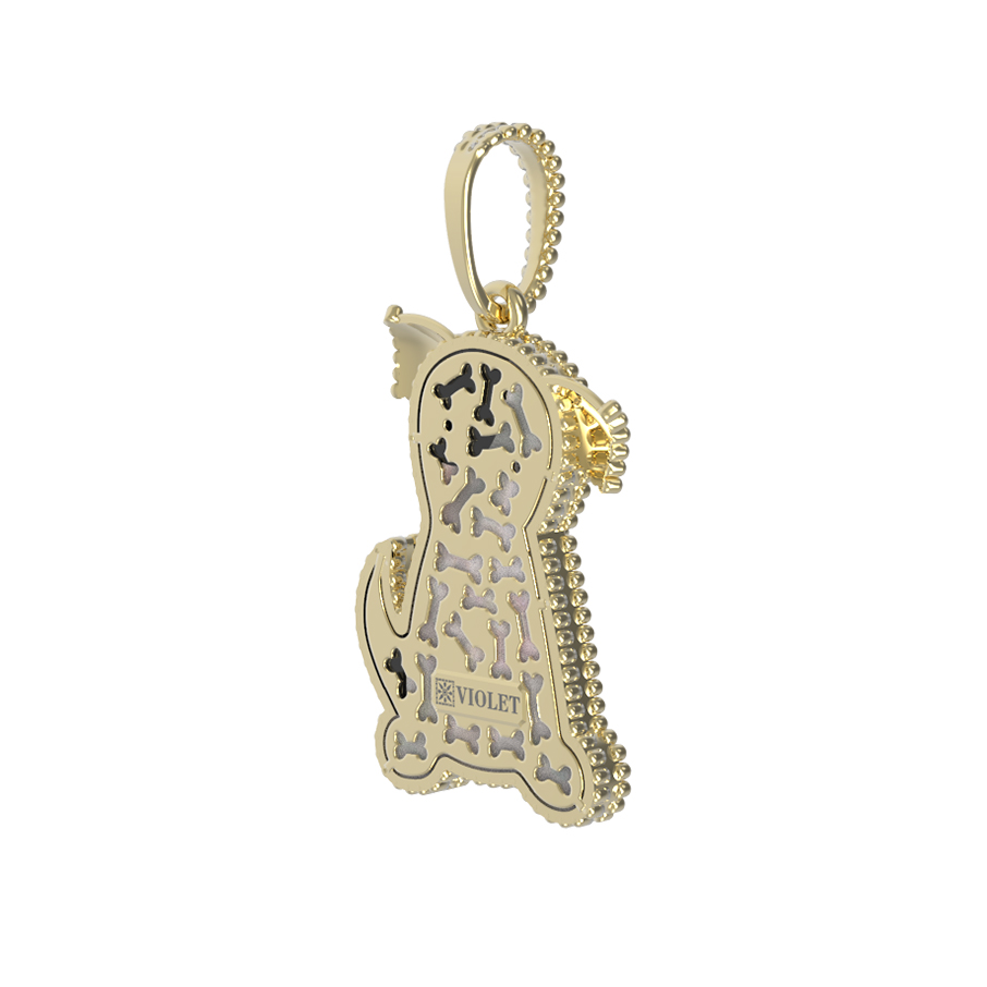 Подвеска из лимонного золота 585 пробы — это изысканное ювелирное украшение, которое станет ярким акцентом вашего образа. Дизайн изделия выполнен в виде милой собаки, что придает украшению игривый, но при этом статусный характер. Основа выполнена в благородном лимонном цвете золота, который эффектно подчеркивает красоту используемых вставок.
