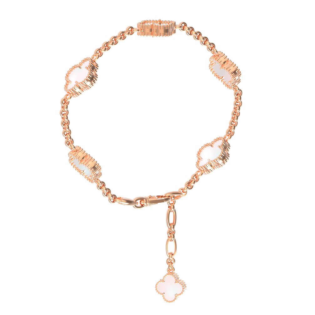 Инкрустация нежным перламутром с мягким переливом создает изысканный контраст с красным золотом, делая браслет универсальным аксессуаром для любого повода. Лаконичный и продуманный дизайн позволяет носить изделие как женщинам, так и мужчинам, предпочитающим стильные украшения унисекс. Перламутровые вставки гармонично сочетаются с теплым блеском металла, формируя целостный и привлекательный облик.