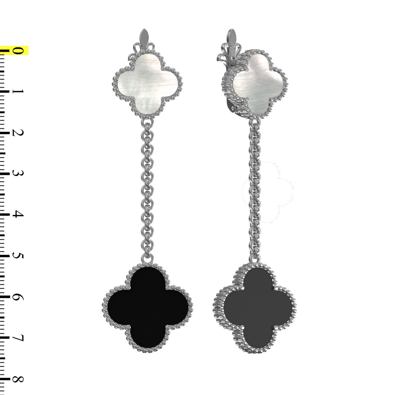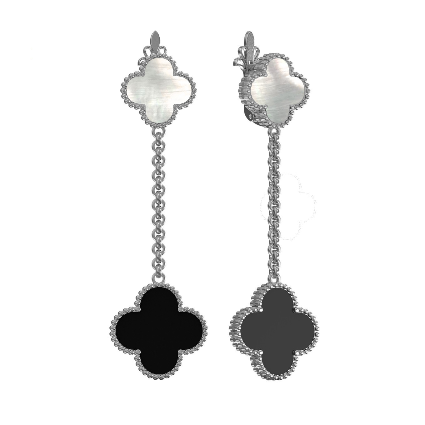 Изысканные серьги из белого золота 585 пробы станут воплощением утонченного вкуса в вашем образе. Дизайн модели выполнен в форме элегантного клевера, который придает украшению особое очарование и символичность. Контрастное сочетание вставок — глубина черного оникса и нежное сияние перламутра — создает гармоничную композицию, которая притягивает взгляды и подчеркивает статусность владелицы. Длинная подвесная конструкция с подвижной цепочкой позволяет серьгам эффектно покачиваться при каждом движении, добавляя динамики и легкости.