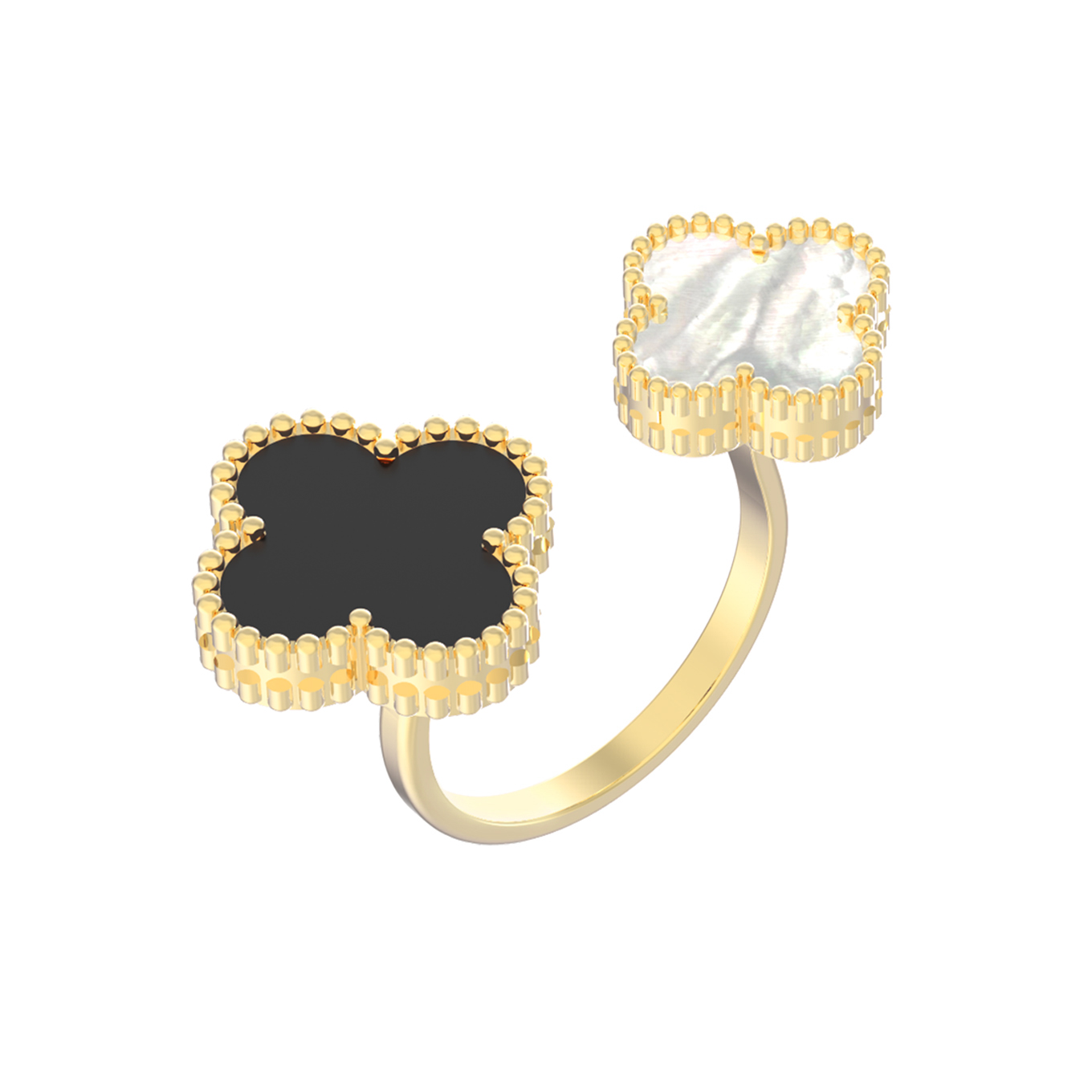 Кольцо из лимонного золота 585 пробы c ониксом и перламутром