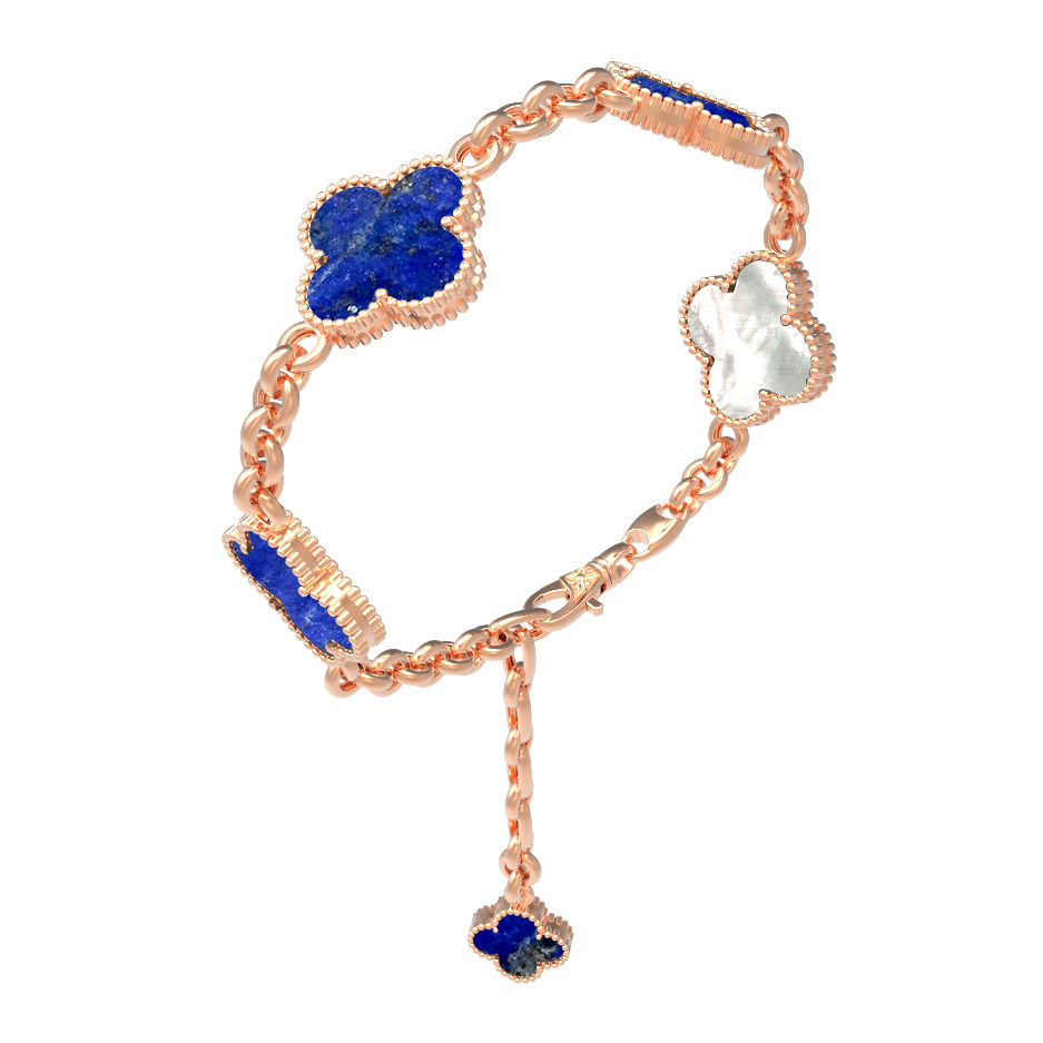 Браслет из красного золота 585 пробы c лазуритом и перламутром