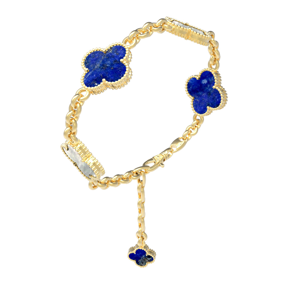 Браслет из лимонного золота 585 пробы c лазуритом и перламутром