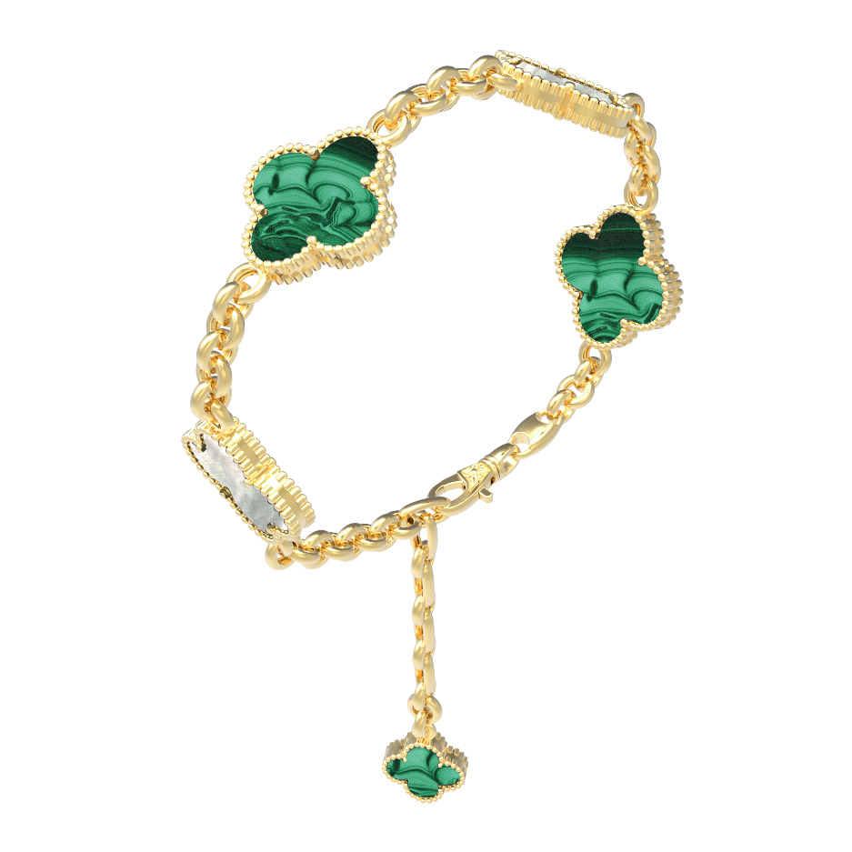 Браслет из лимонного золота 585 пробы c малахитом и перламутром