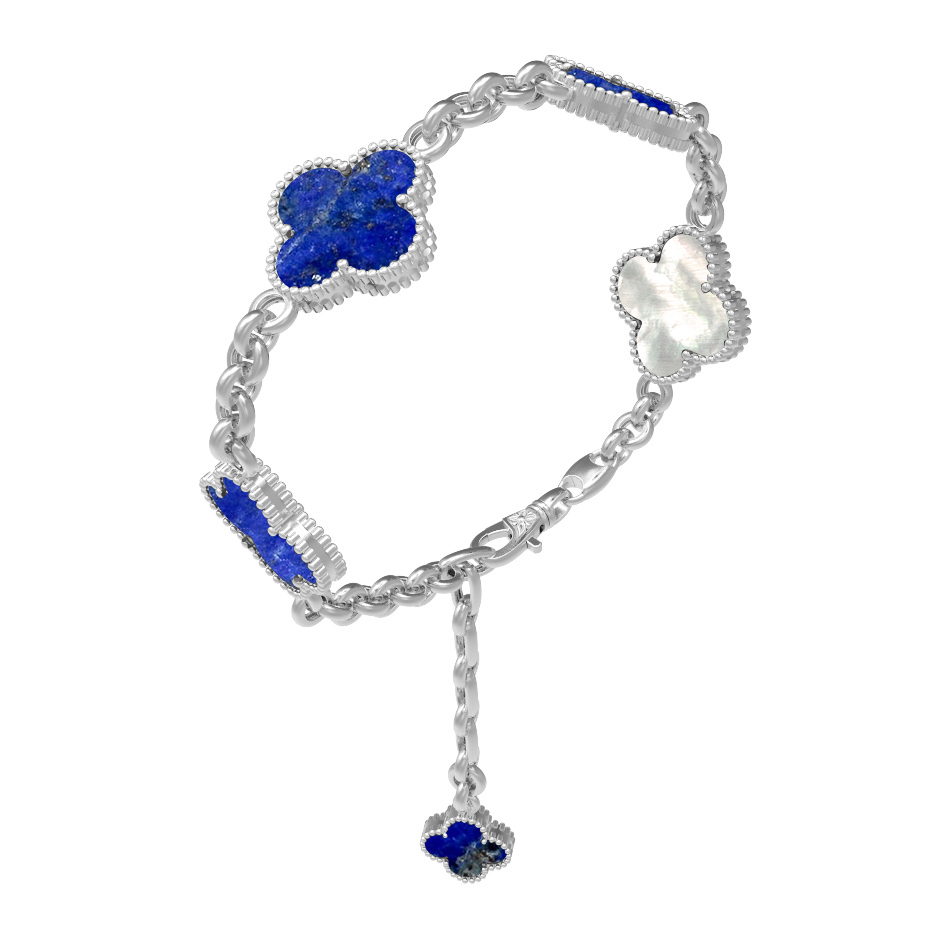 Браслет из белого золота 585 пробы c лазуритом и перламутром
