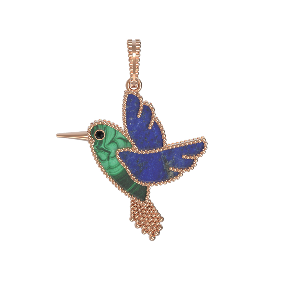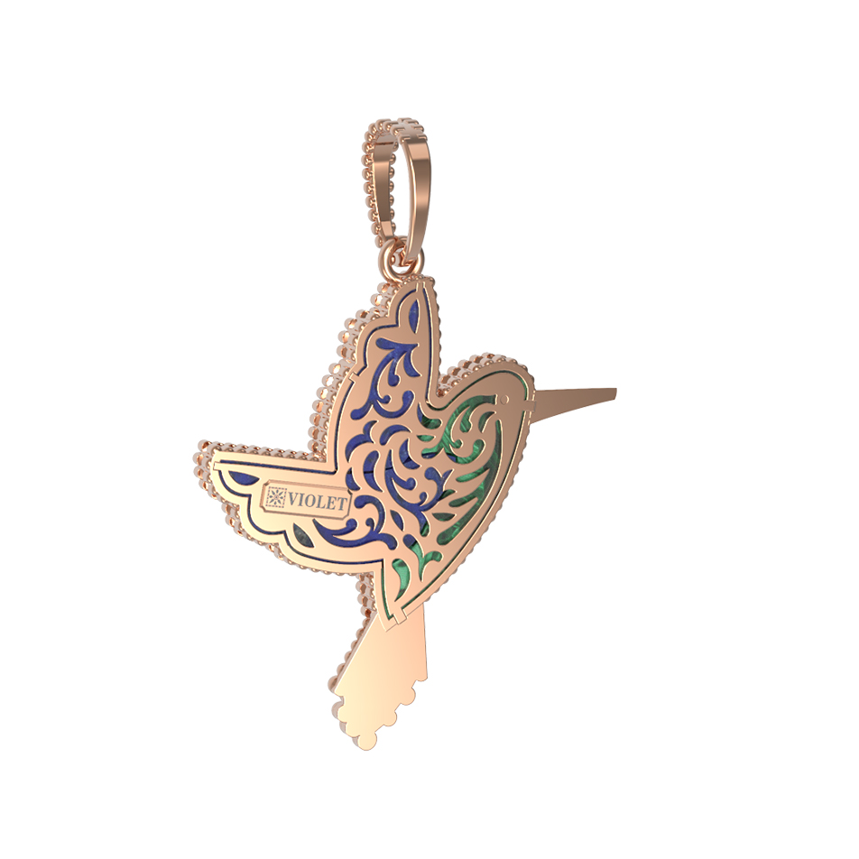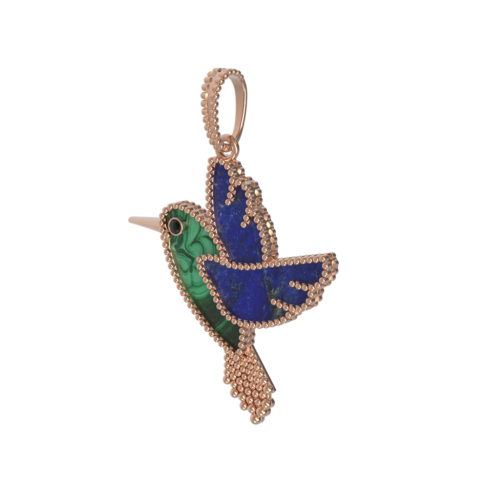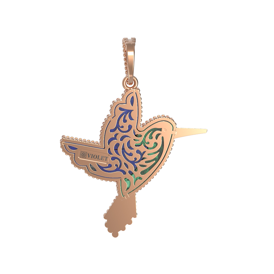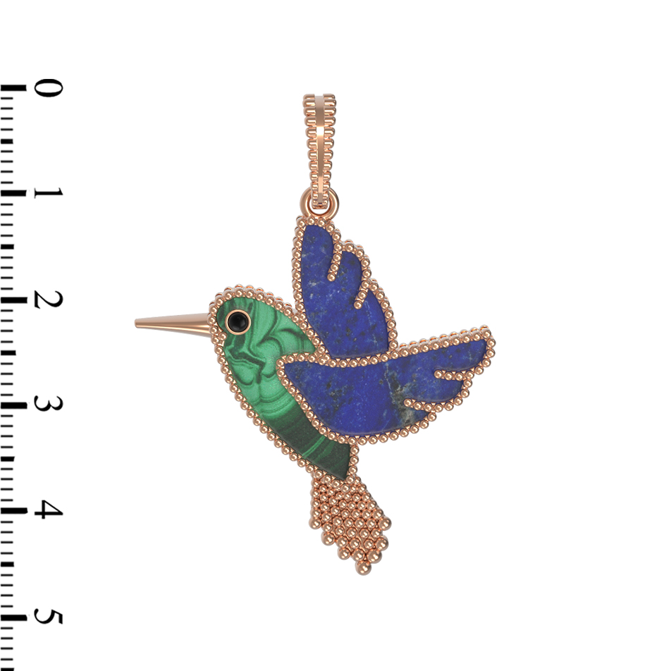 Подвеска из красного золота 585 пробы c эмалью, лазуритом и малахитом