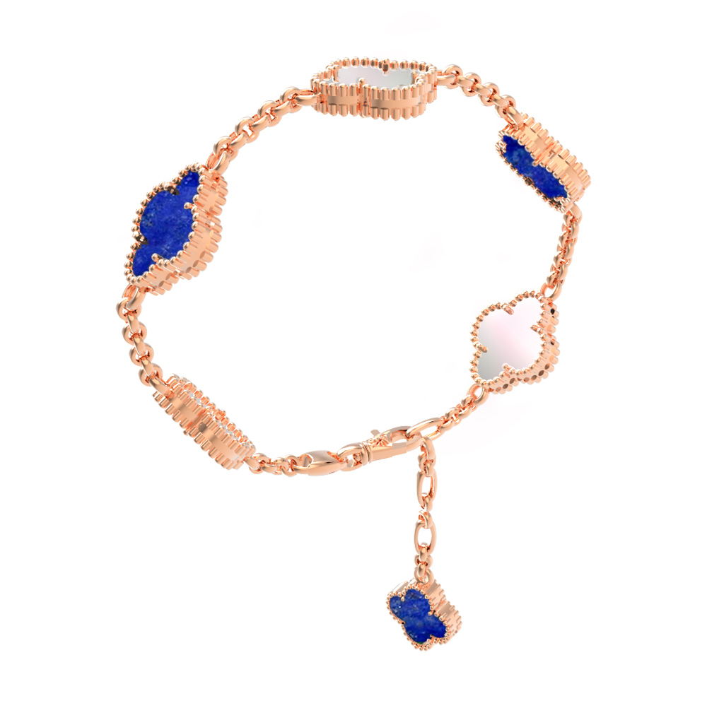 Браслет из красного золота 585 пробы c лазуритом и перламутром