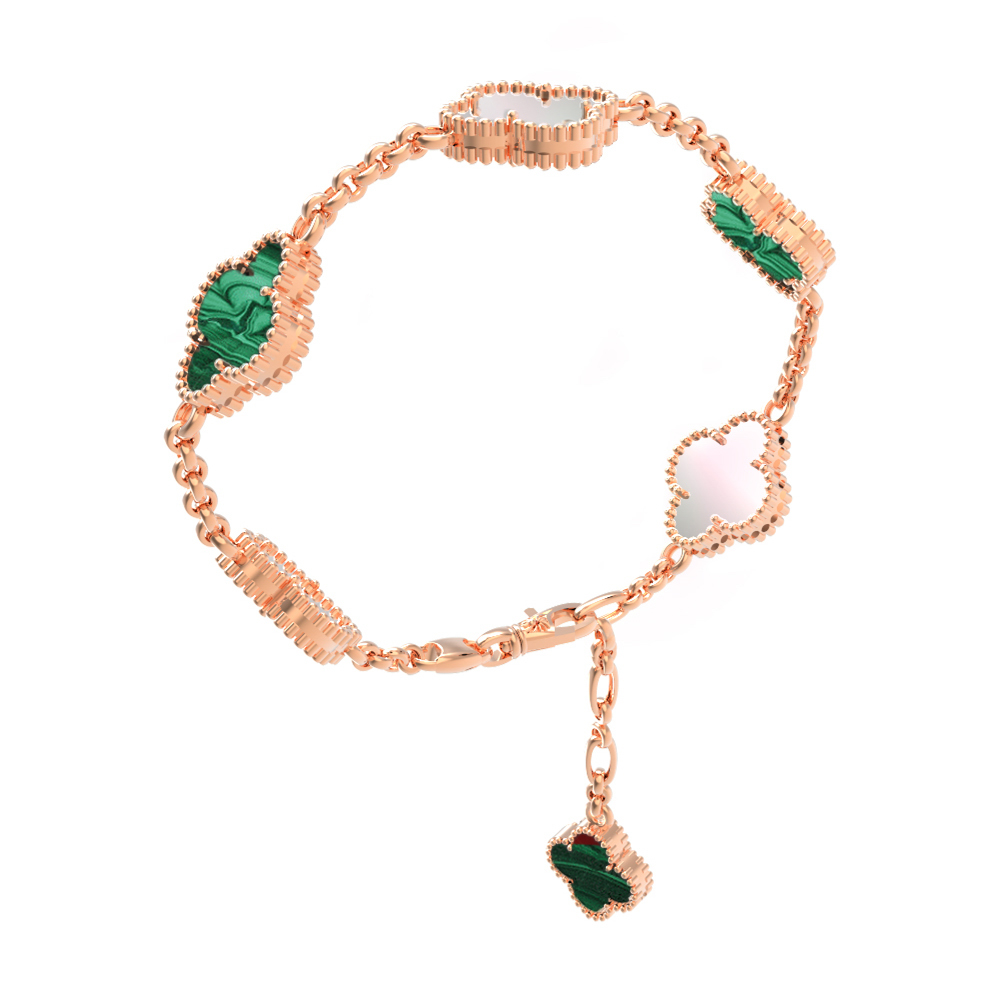 Браслет из красного золота 585 пробы c малахитом и перламутром