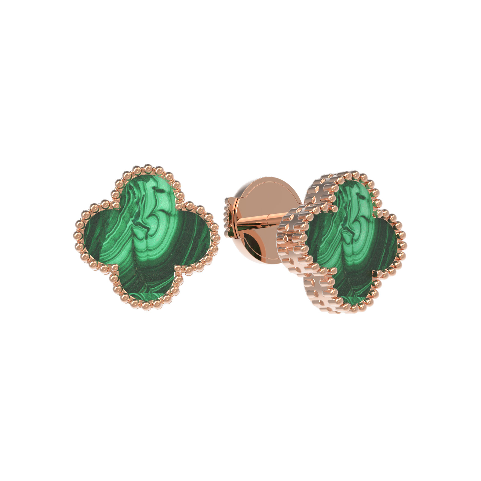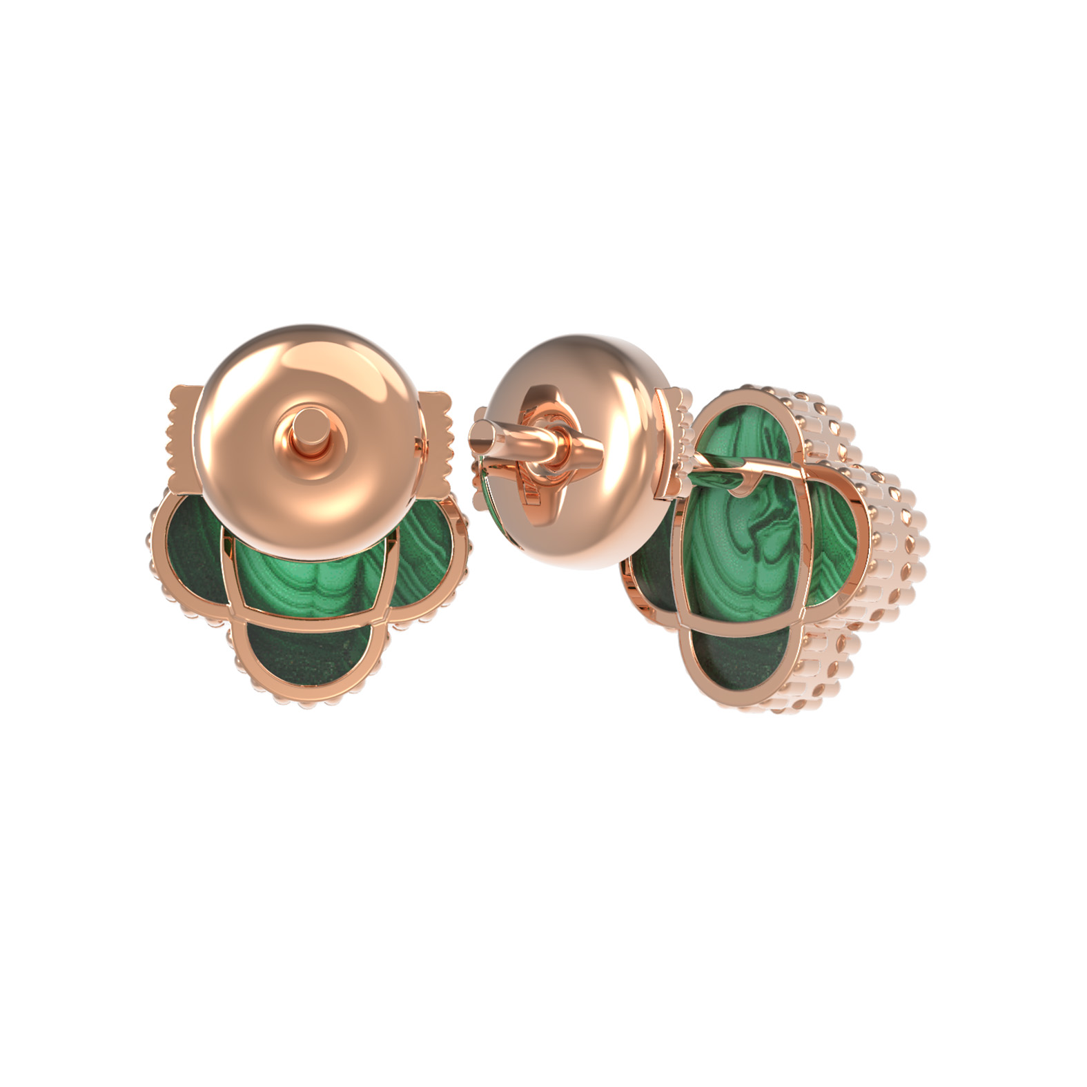 Серьги из красного золота 585 пробы c малахитом