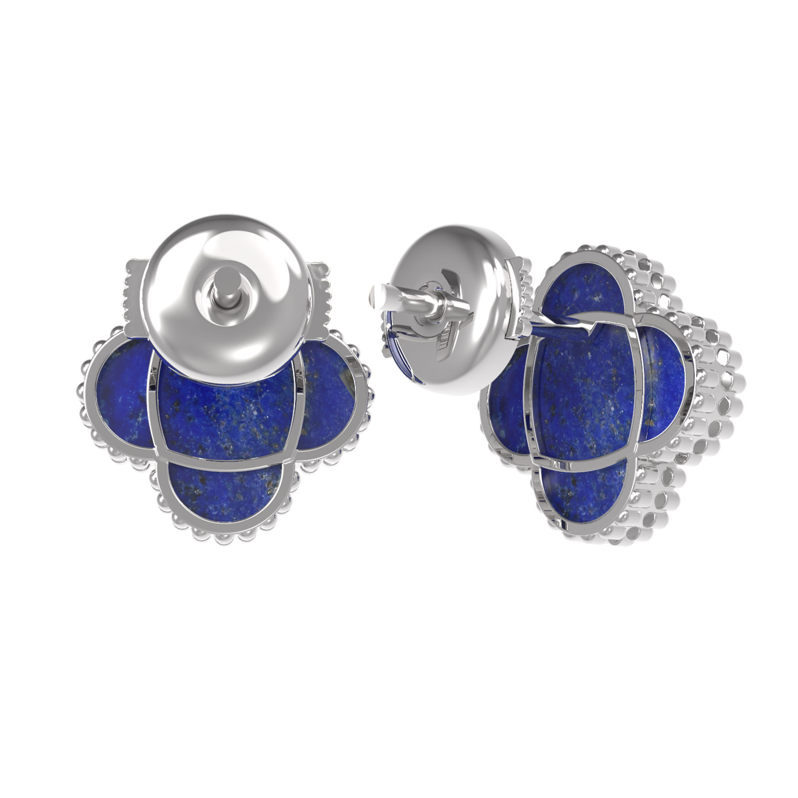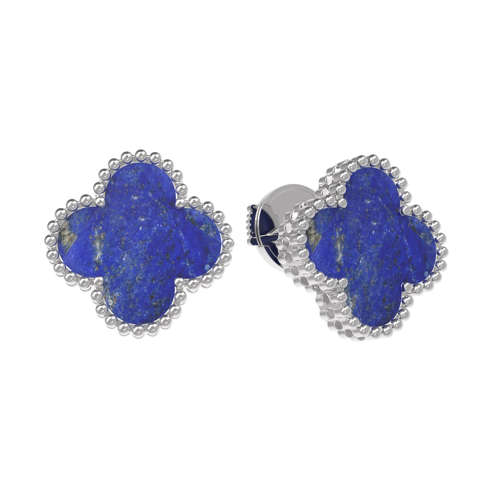 Данная модель оснащена двумя вставками натурального лазурита, которые придают изделию особую глубину и выразительность. Геометрически правильная и мягкая форма клевера делает серьги универсальным аксессуаром, подходящим как для женщин, так и для мужчин. Благодаря своему дизайну и сдержанной палитре, они легко дополнят любой образ — от делового костюма до вечернего наряда.