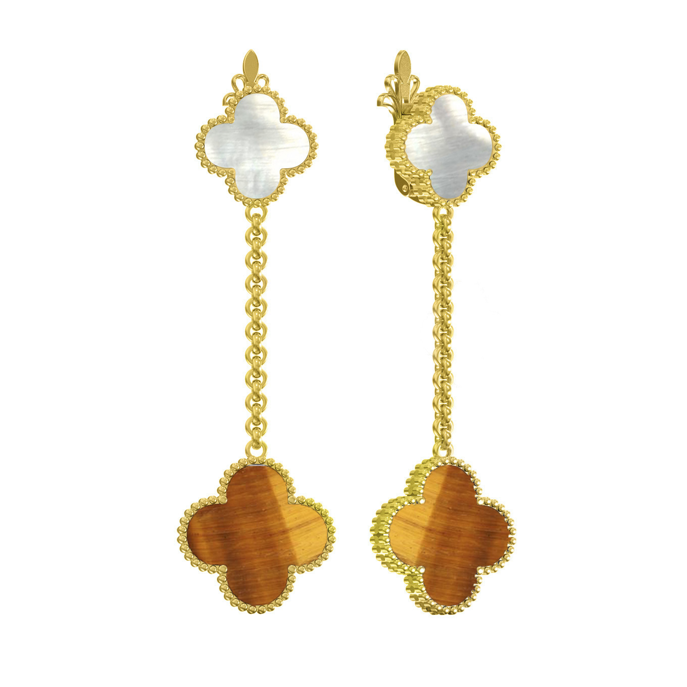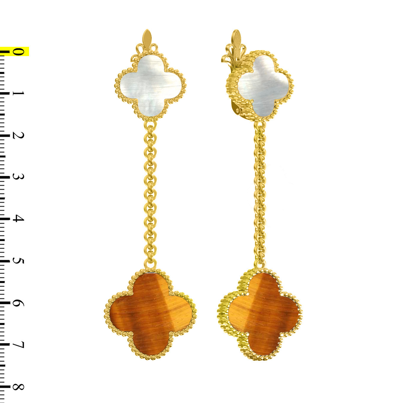Серьги из лимонного золота 585 пробы c тигровым глазом и перламутром
