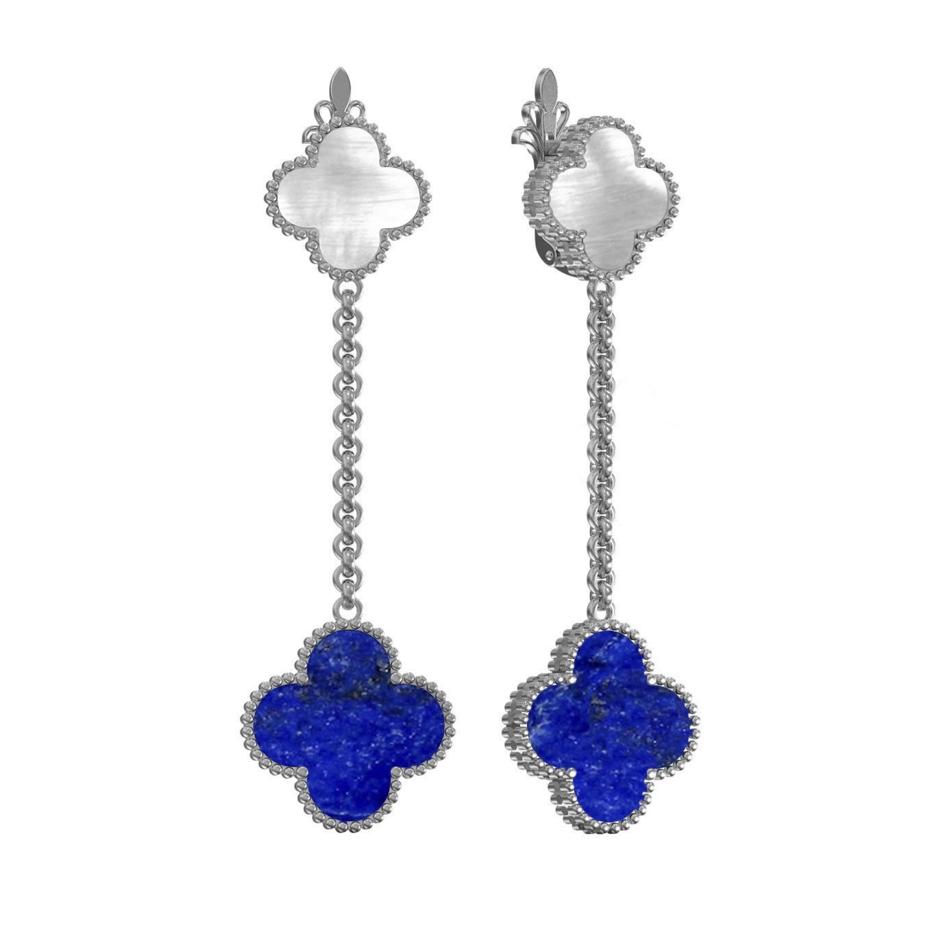 Серьги из белого золота 585 пробы c лазуритом и перламутром