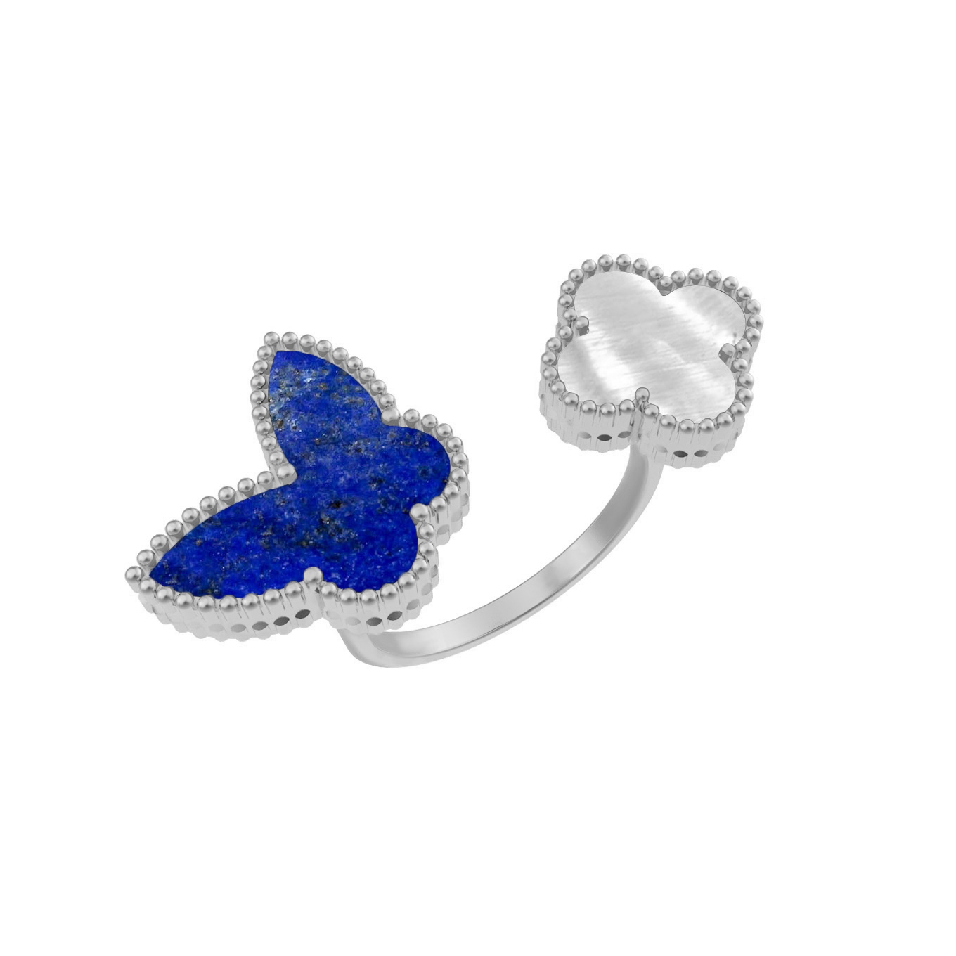 Кольцо из белого золота 585 пробы c лазуритом и перламутром