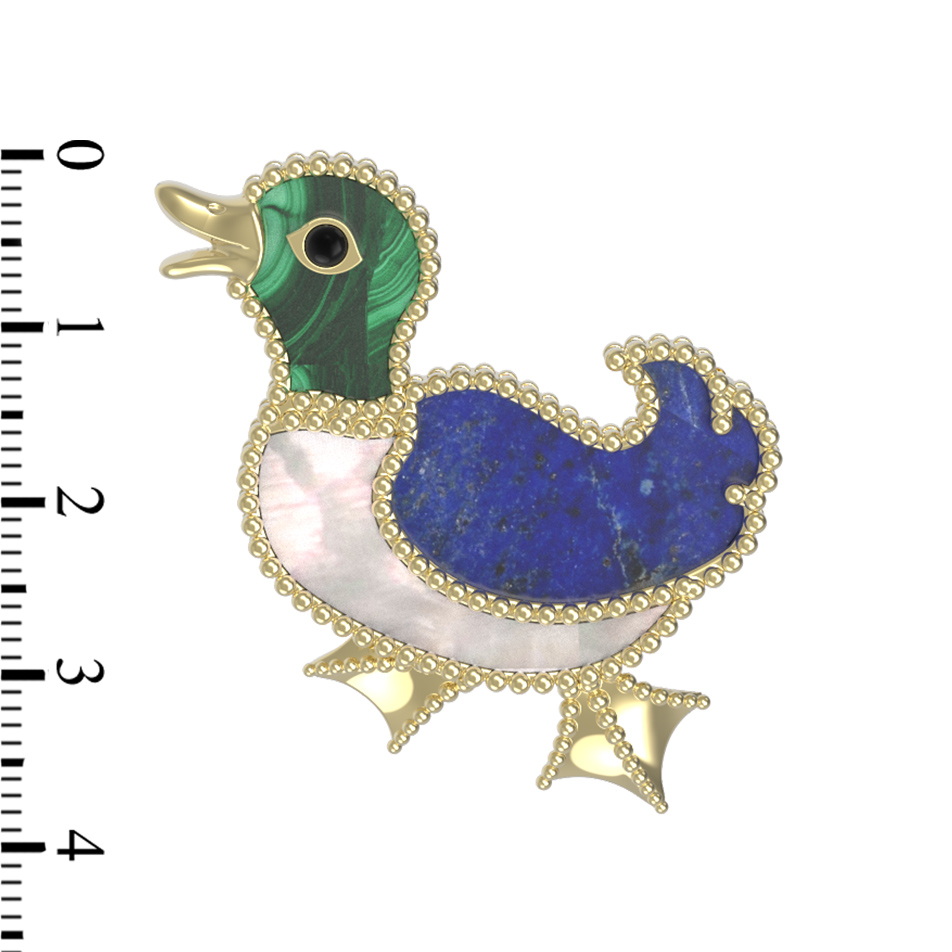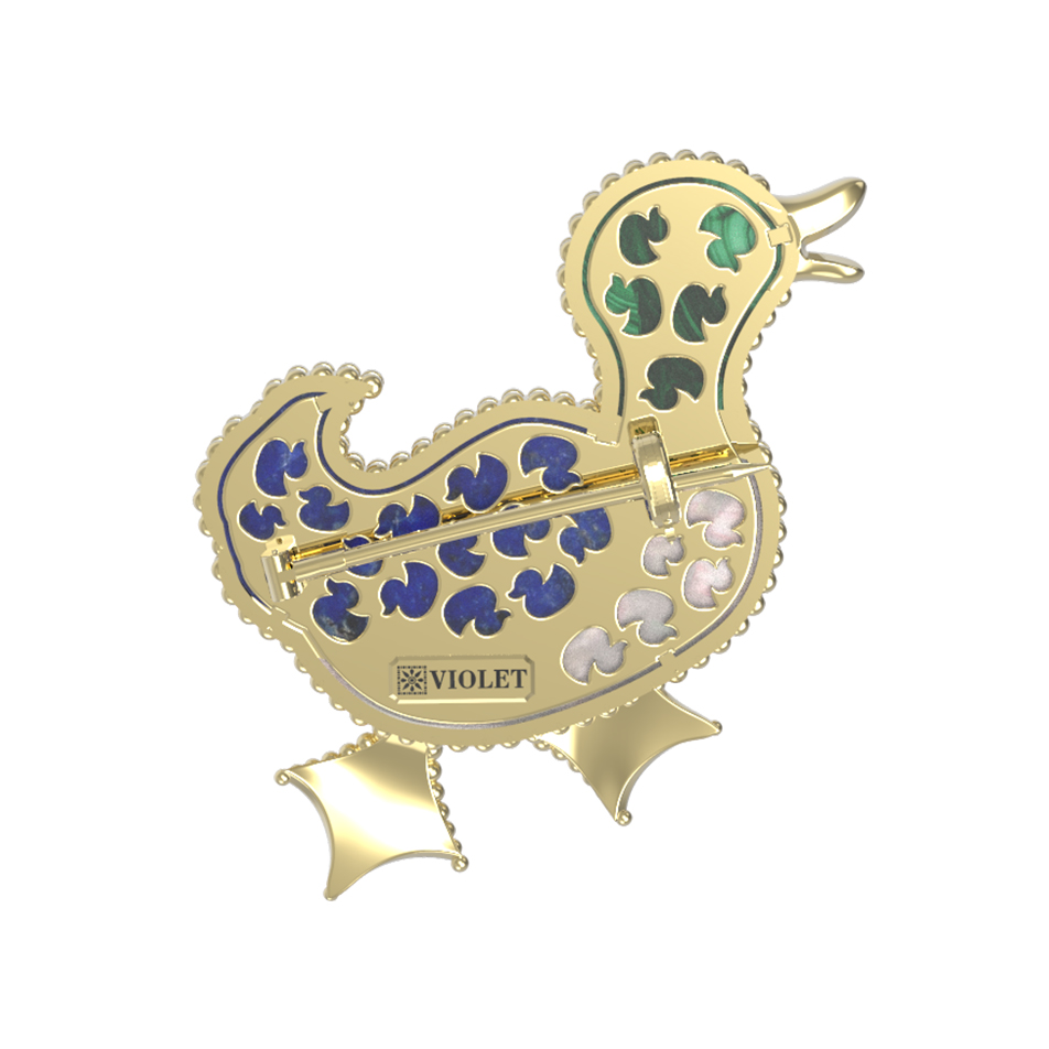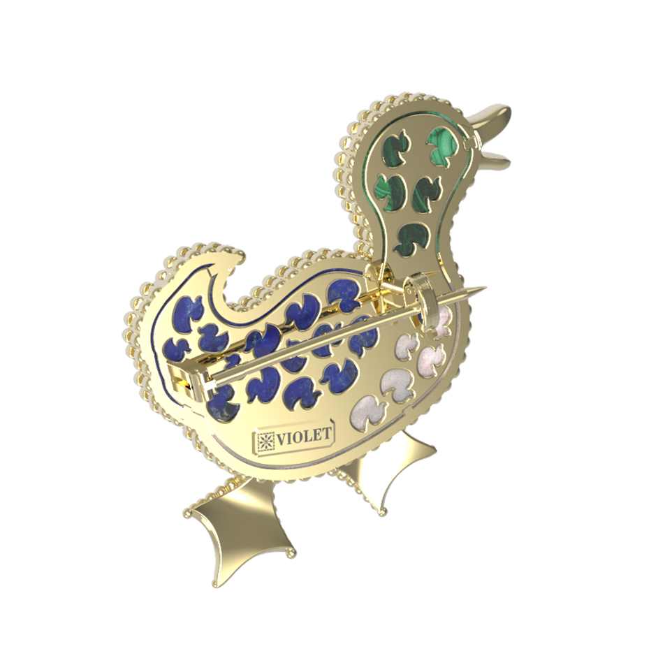 Брошь из лимонного золота c эмалью, лазуритом, малахитом и перламутром