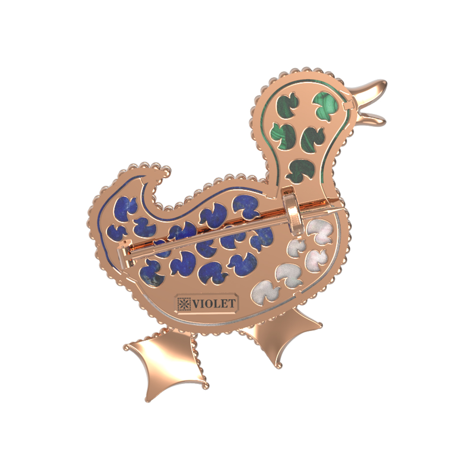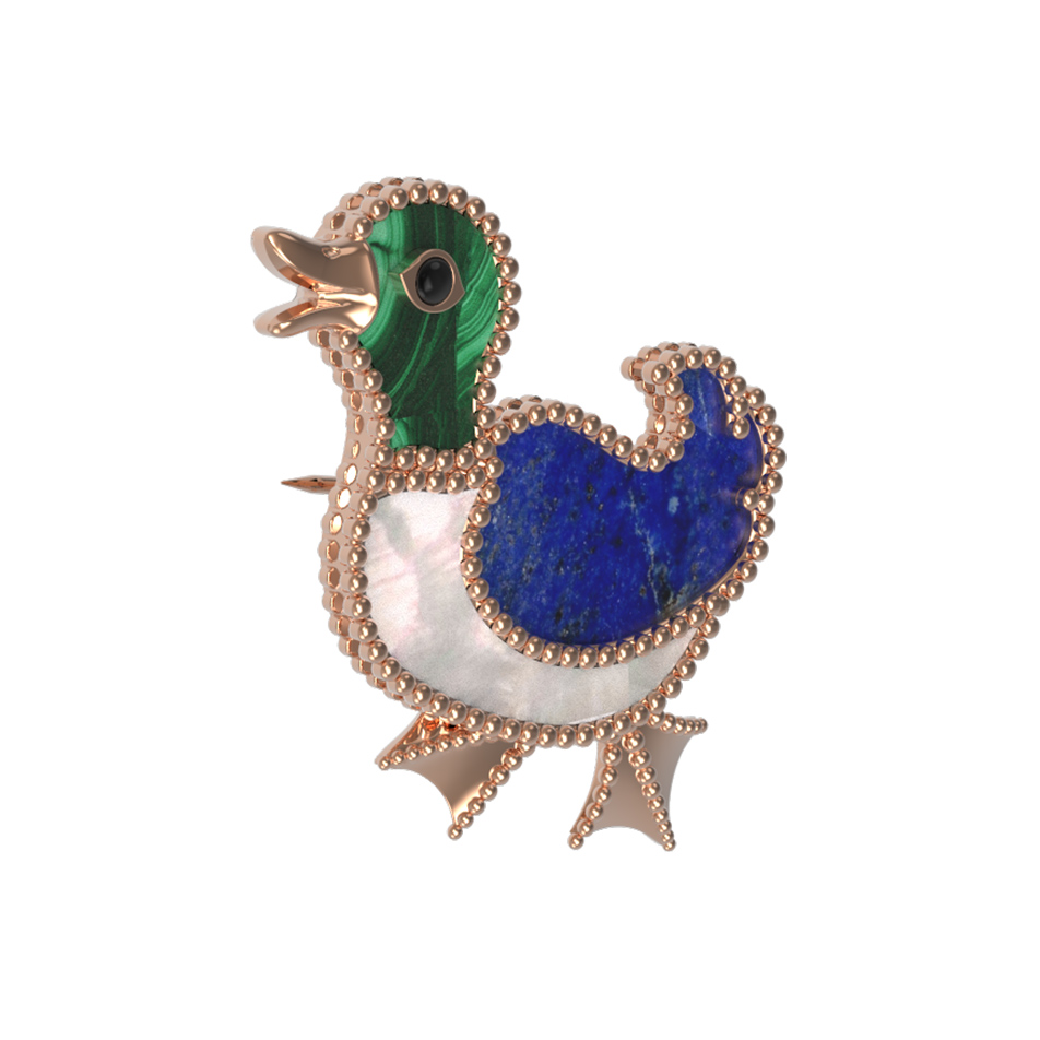 Эта авторская брошь из красного золота 585 пробы станет ярким акцентом вашего образа. Дизайн украшения, вдохновленный грациозными птицами, делает его не просто ювелирным аксессуаром, а настоящим произведением искусства из коллекции De Luxe — В стране чудес. Художественное исполнение подчеркивается использованием качественных материалов: в изделии гармонично сочетаются вставки из натурального малахита зеленого цвета, насыщенного синего лазурита и нежного перламутра.