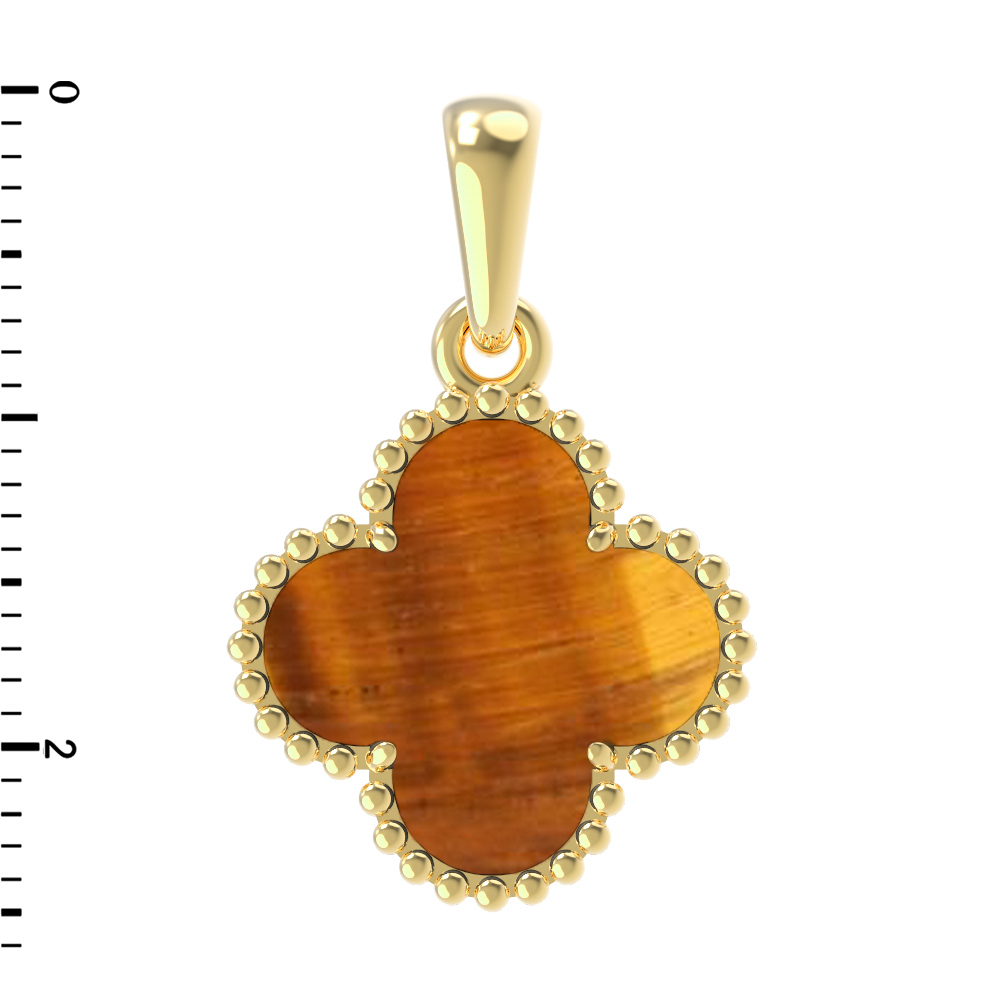 Подвеска из лимонного золота с тигровым глазом станет элегантным дополнением вашего образа, подчеркивая безупречный вкус и внимание к деталям. Это изысканное украшение из коллекции De Luxe — Клевер выполнено в узнаваемом и лаконичном дизайне клевер, который считается символом удачи и гармонии. В качестве центрального акцента выступает одна вставка из тигрового глаза насыщенного оранжевого цвета, чья природная текстура красиво переливается при каждом движении, создавая теплые и глубокие блики.