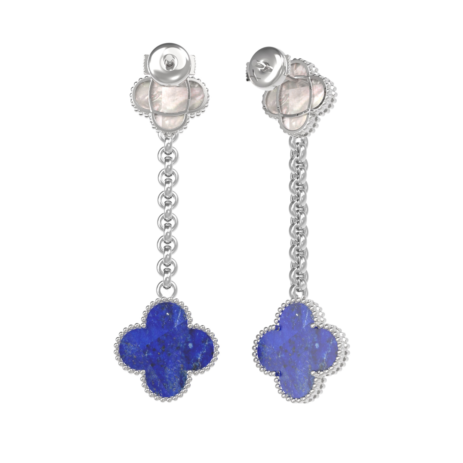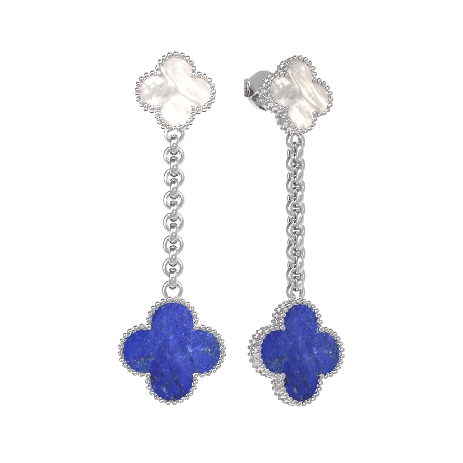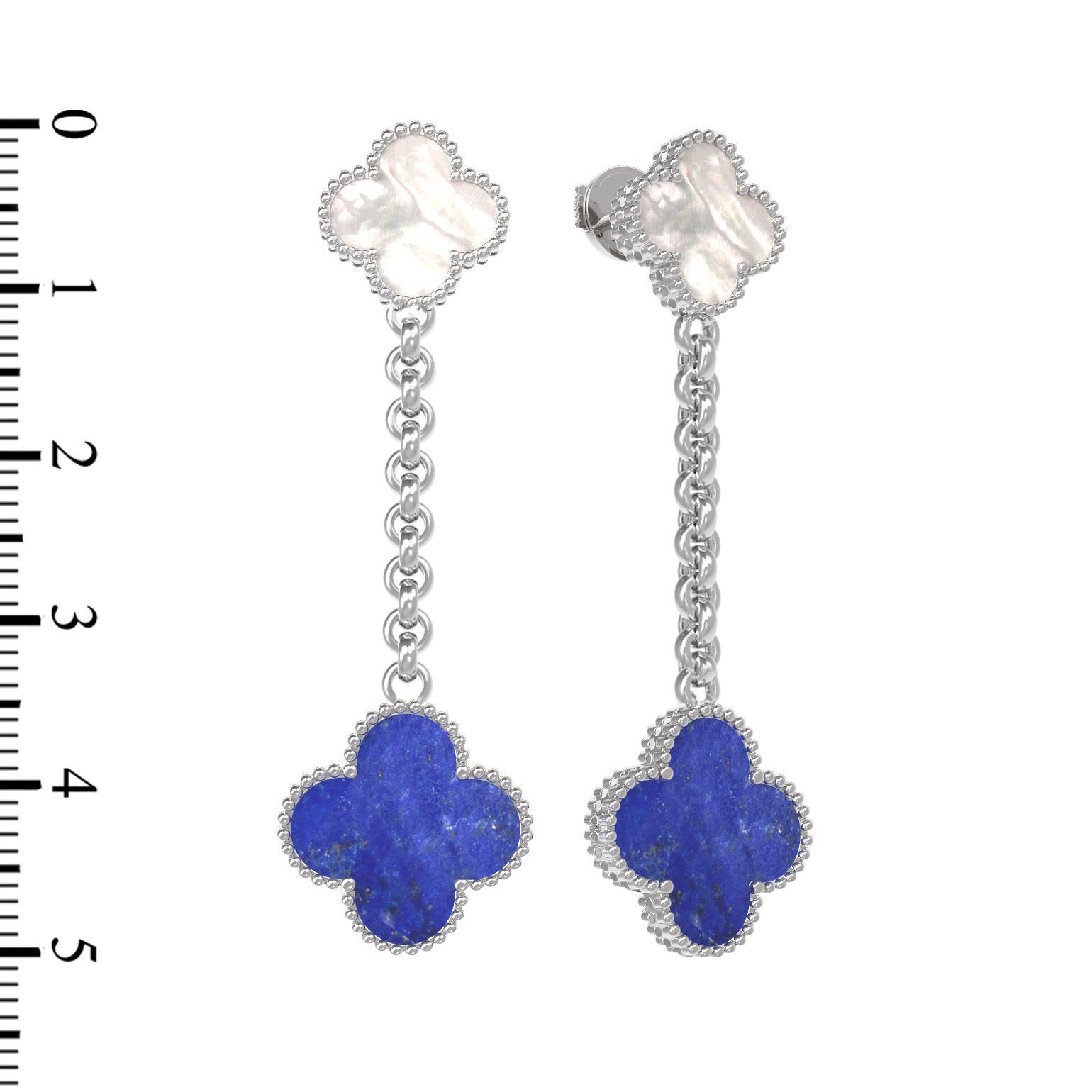 Серьги из белого золота 585 пробы c лазуритом и перламутром