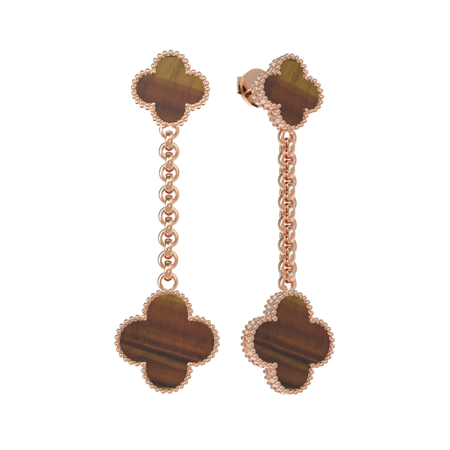 Эти изысканные серьги из коллекции De Luxe — Клевер станут безупречным завершением вашего образа, подчеркивая статус и утонченный вкус. Украшение выполнено из благородного красного золота 585 пробы, которое придает изделию теплое и насыщенное сияние. В центре композиции — 4 вставки из натурального тигрового глаза. Этот камень отличается глубоким оранжевым оттенком с характерным шелковистым отливом, который делает каждое изделие визуально уникальным и притягательным.