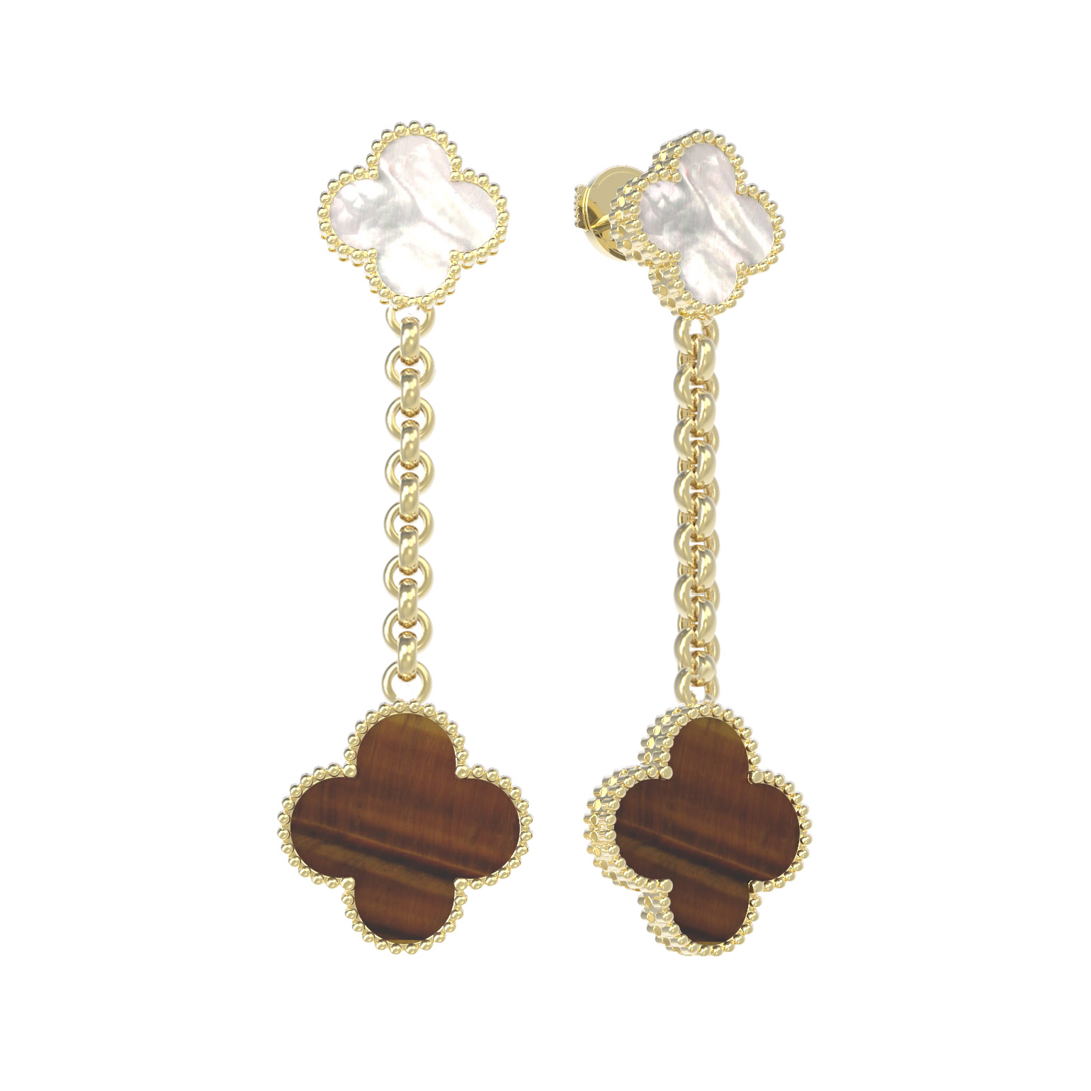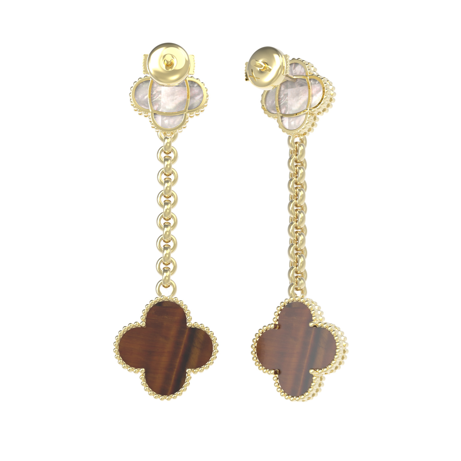 Изысканные серьги из лимонного золота 585 пробы из коллекции De Luxe — Клевер станут воплощением элегантности и утонченного стиля. Дизайн модели вдохновлен природной символикой клевера, что придает украшению особую эстетическую привлекательность. Каждая серьга инкрустирована двумя контрастными вставками: благородный перламутр мягкого оттенка гармонично сочетается с теплым, глубоким тигровым глазом оранжевого цвета. Тщательно проработанные детали и высокое качество исполнения делают это изделие универсальным дополнением к любому образу.