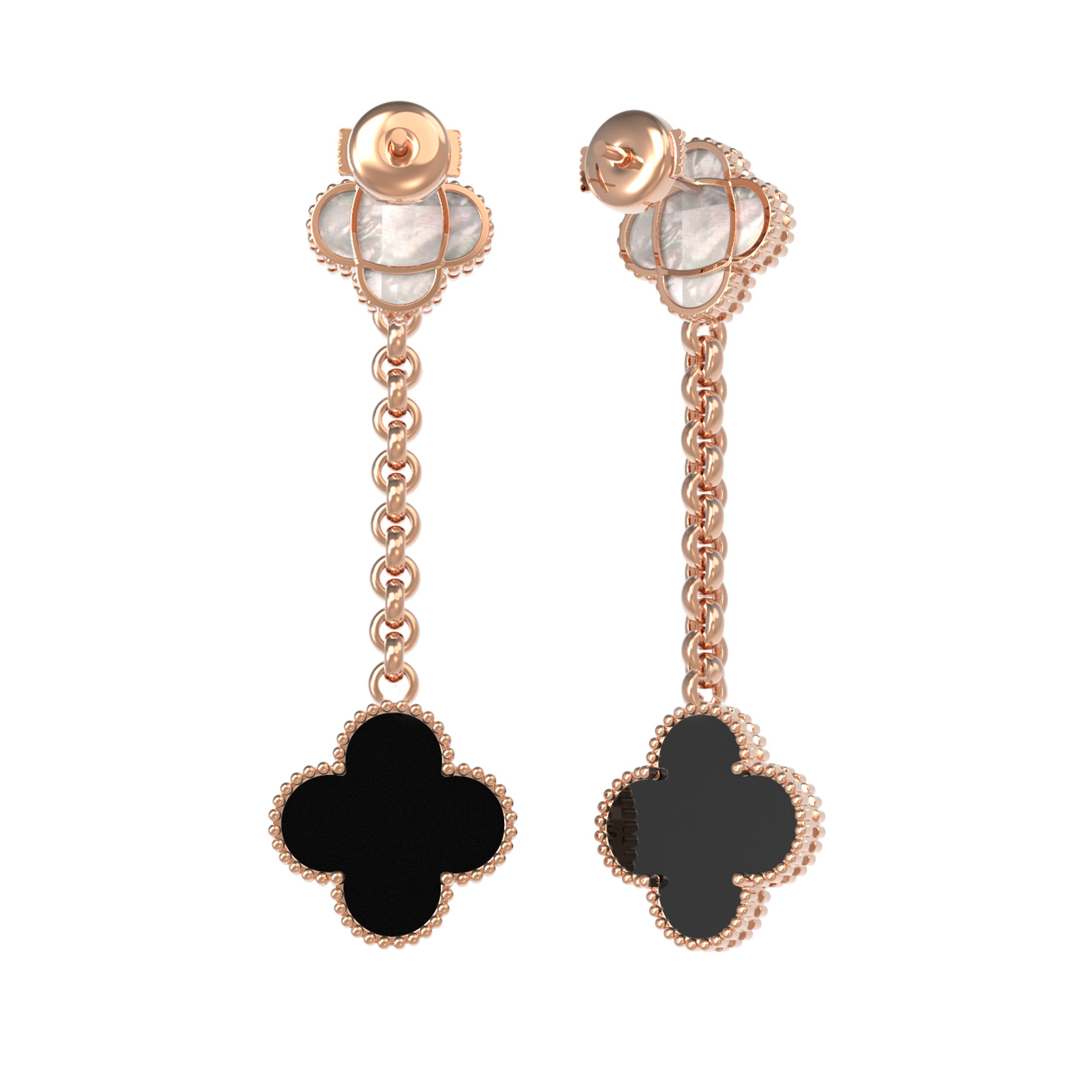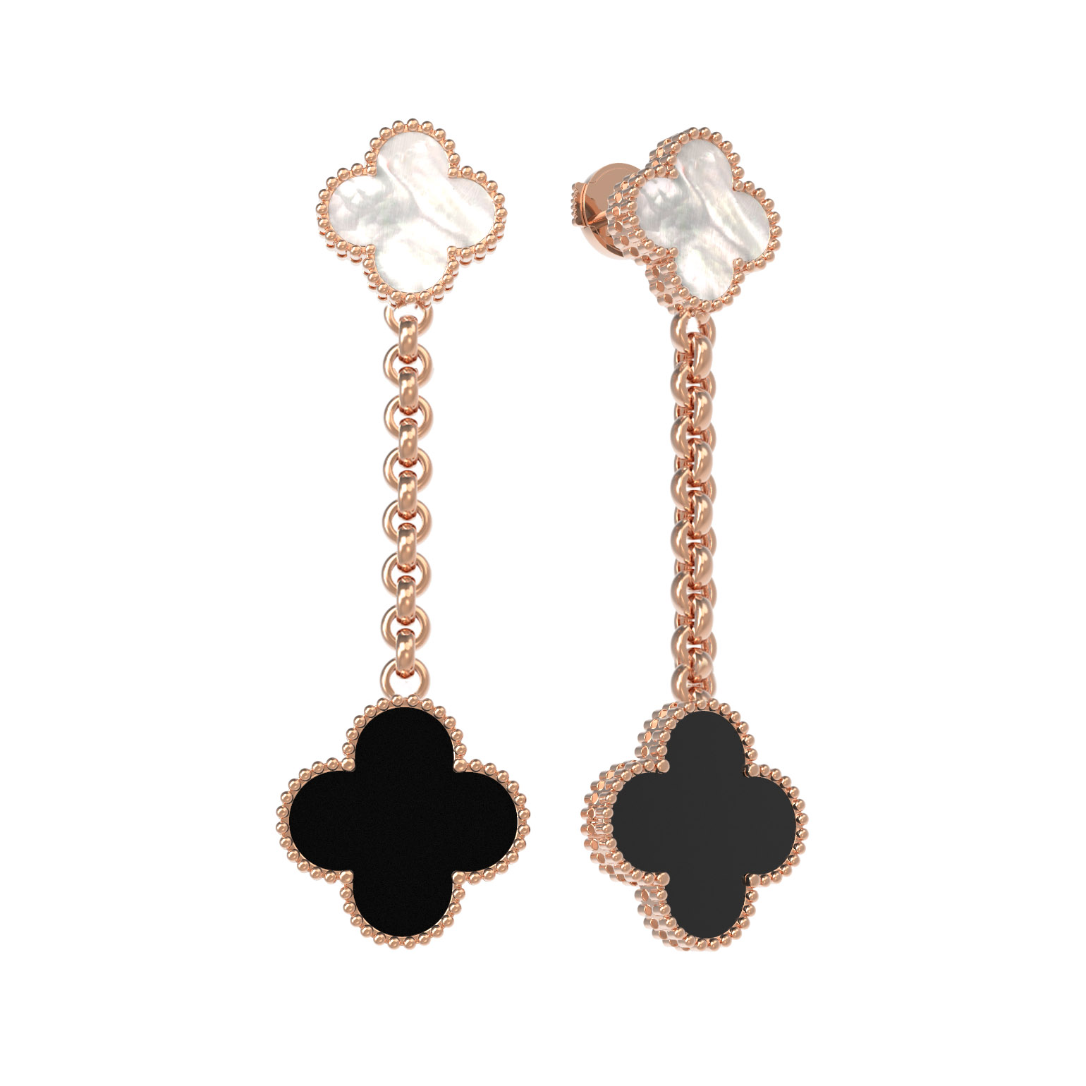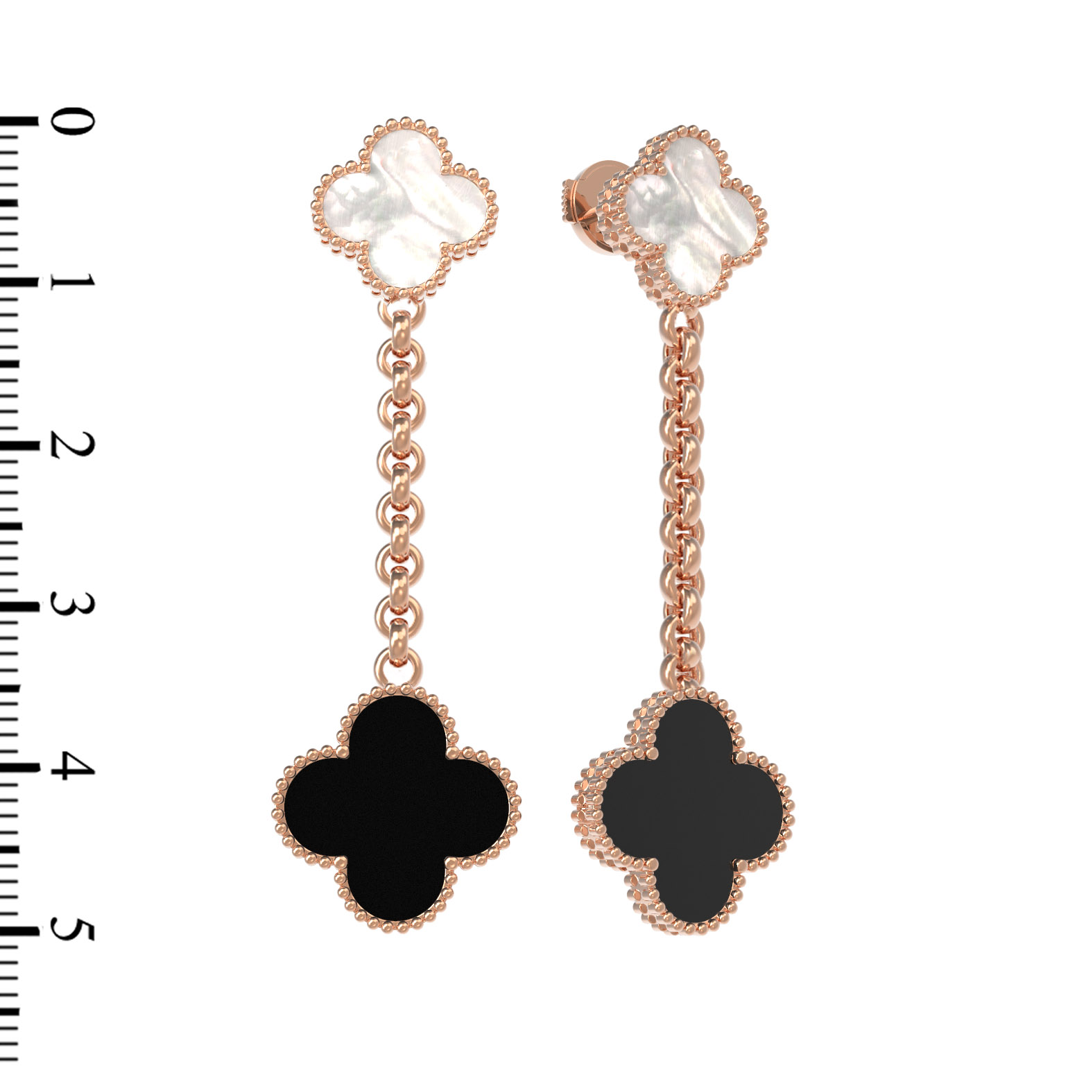 Серьги из красного золота 585 пробы c ониксом и перламутром