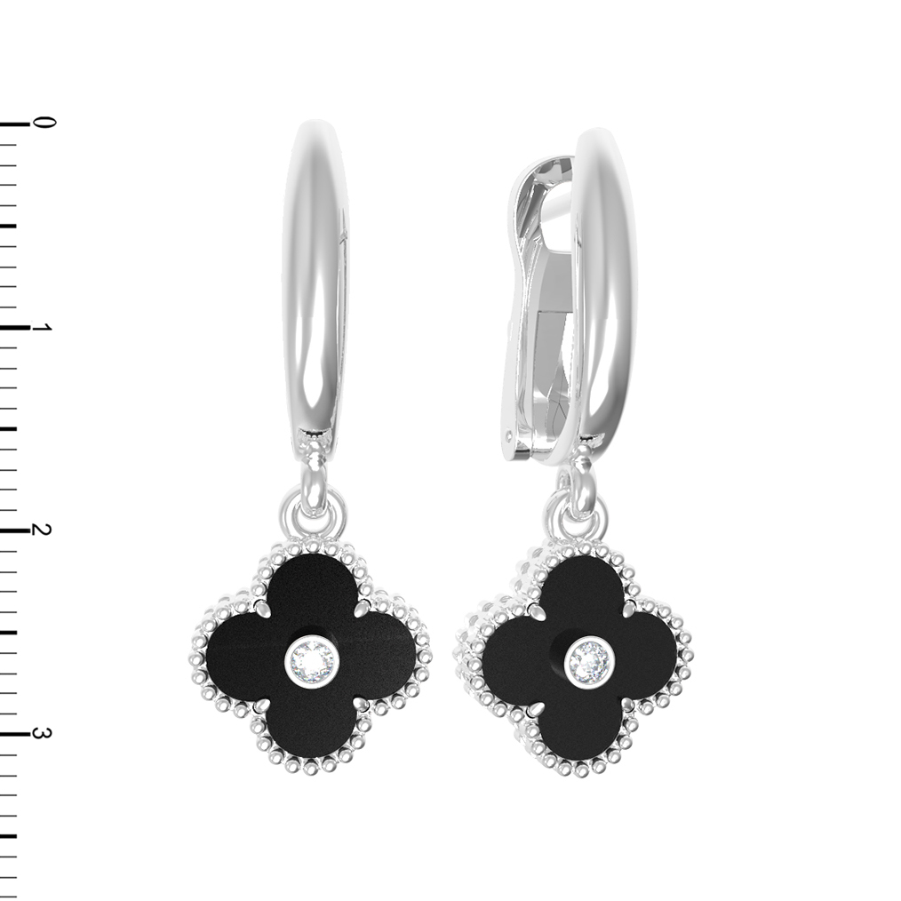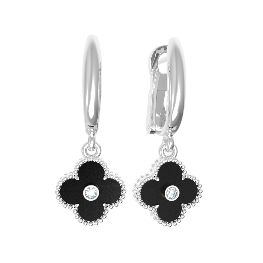 Элегантные серьги из белого золота 585 пробы — это воплощение стиля и утонченного вкуса, созданное в рамках коллекции De Luxe — Клевер. Ювелирное изделие выполнено в изысканном дизайне «клевер», который стал символом удачи и гармонии в современном ювелирном искусстве. Благородный блеск белого металла эффектно подчеркивает контраст вставок: глубокий черный оникс гармонично сочетается с сиянием четырех круглых бриллиантов, создавая выразительную композицию.