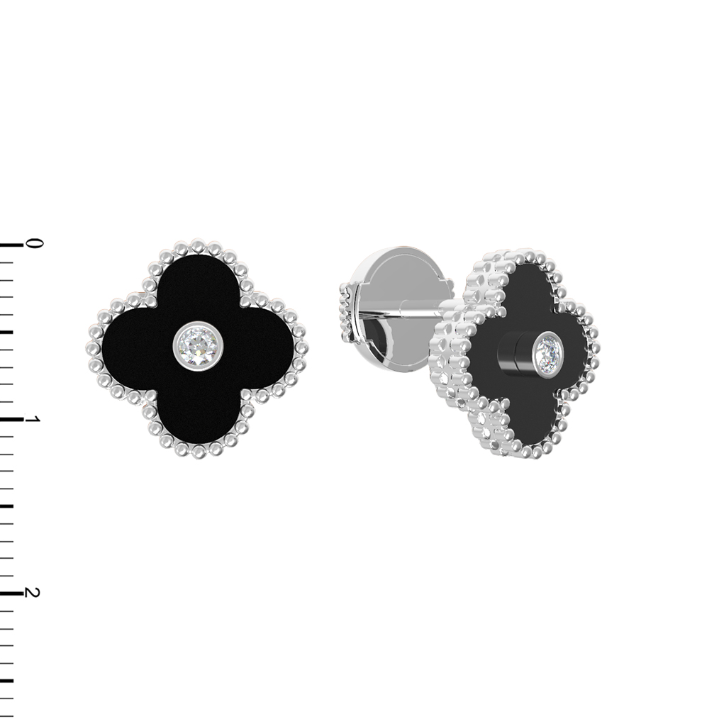 Изысканные серьги из белого золота 585 пробы — это сочетание лаконичного дизайна и благородных материалов. Модель входит в коллекцию De Luxe — Клевер, воплощая собой утонченную эстетику и внимание к деталям. Главным акцентом украшения стал узнаваемый дизайн клевер, придающий образу нотки аристократичности. Глубокий черный оникс контрастирует с холодным блеском металла, создавая гармоничный дуэт.