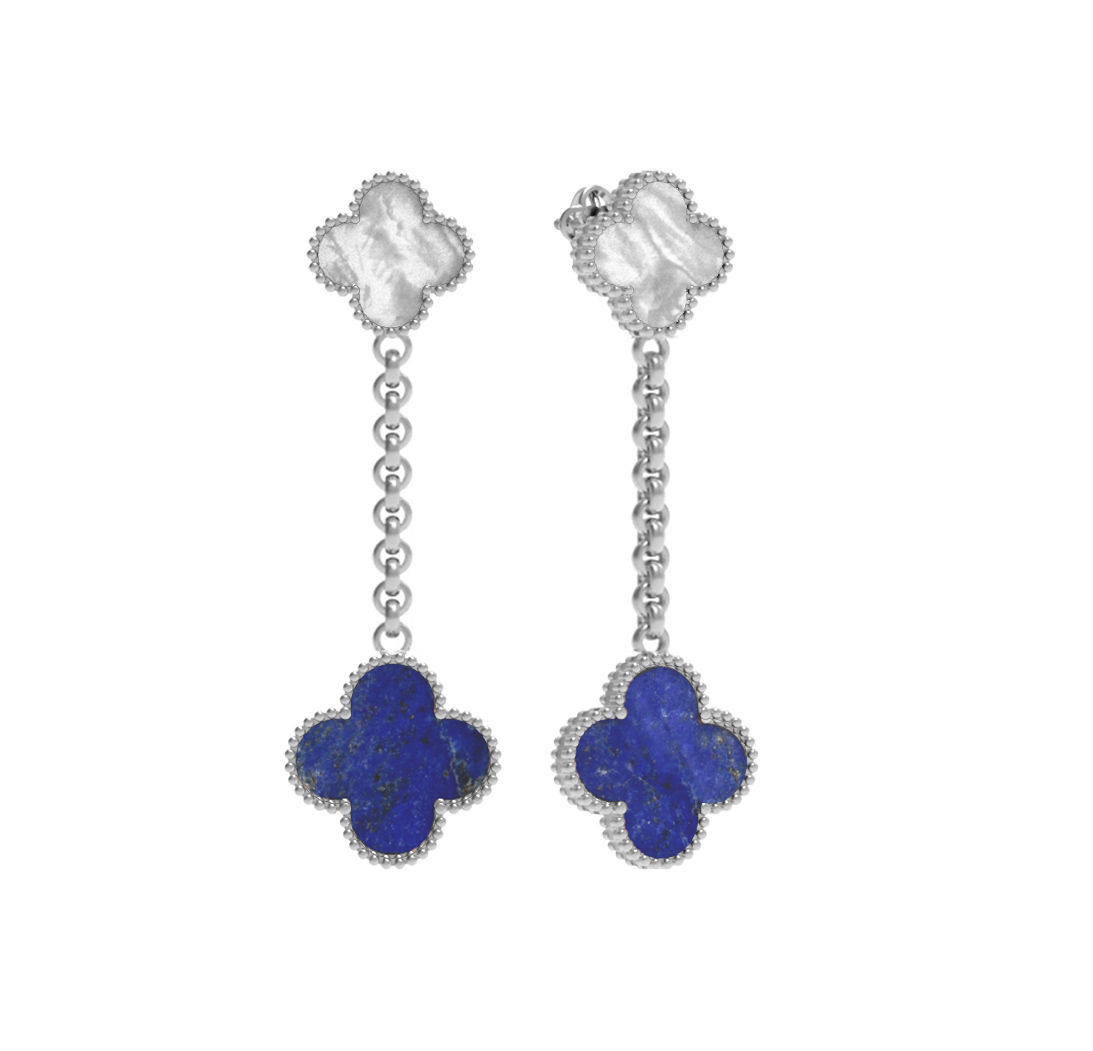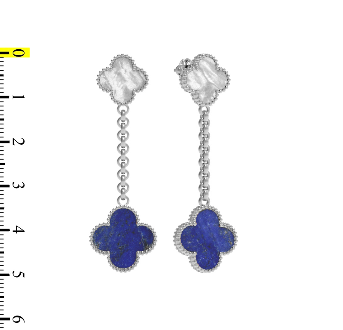 Серьги из белого золота 585 пробы c лазуритом и перламутром
