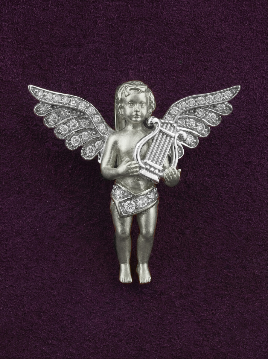 Дизайн модели вдохновлен античными мотивами, где купидоны выступают символом романтики и высокого стиля. Универсальность исполнения делает эту подвеску подходящим выбором как для женщин, так и для мужчин, которые ценят художественность и качество исполнения в своих ювелирных изделиях. Лаконичная элегантность и продуманная композиция позволяют сочетать этот аксессуар с различными стилями одежды, от повседневных образов до вечерних нарядов. Добавьте в свою коллекцию аксессуар, который сочетает в себе мастерство исполнения и эстетику вне времени.