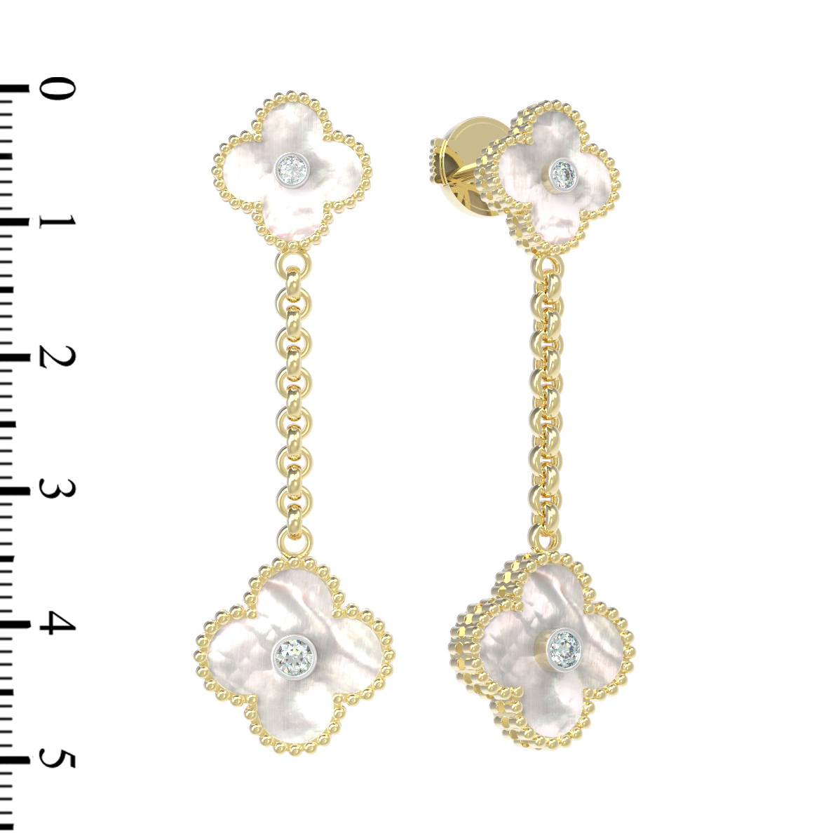 Центральным элементом композиции стали четыре вставки из благородного перламутра с характерным мягким переливом, дополненные четырьмя сверкающими бриллиантами круглой формы. Контраст нежного перламутра и классического блеска драгоценных камней создает элегантный баланс. Длинная цепочка в конструкции серег придает изделию динамику и легкость, заставляя его эффектно играть при каждом вашем движении.