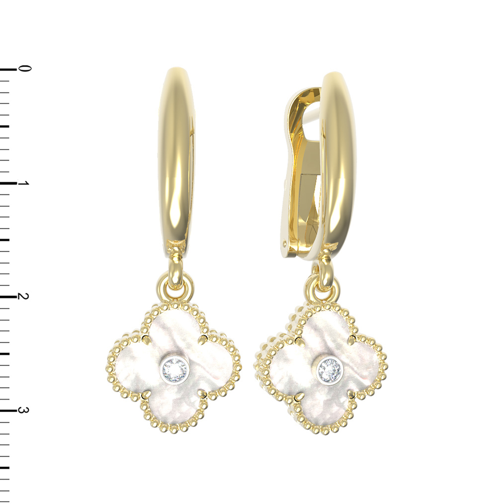Серьги из лимонного золота c бриллиантами и перламутром
