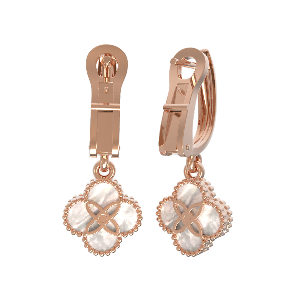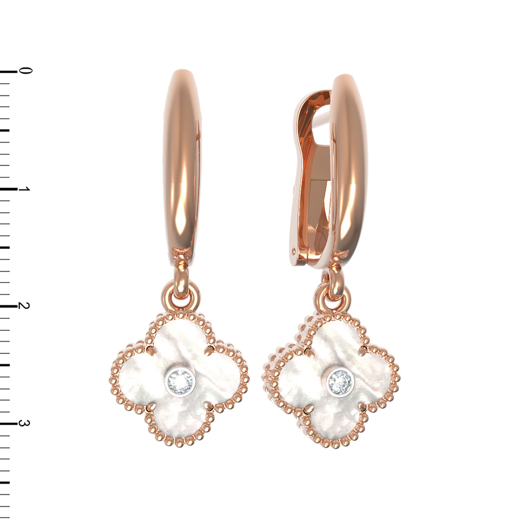 Элегантные и утонченные серьги из красного золота 585 пробы станут воплощением вашего безупречного вкуса. Дизайн изделия выполнен в форме изящного клевера, что придает украшению особое очарование и символический смысл. В центре каждой декоративной части расположен сверкающий бриллиант круглой огранки, который эффектно контрастирует с нежным перламутром белого цвета. Теплый оттенок красного золота гармонично подчеркивает сияние вставок, создавая атмосферу роскоши и гармонии.