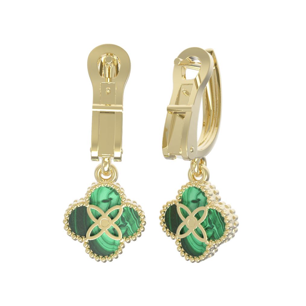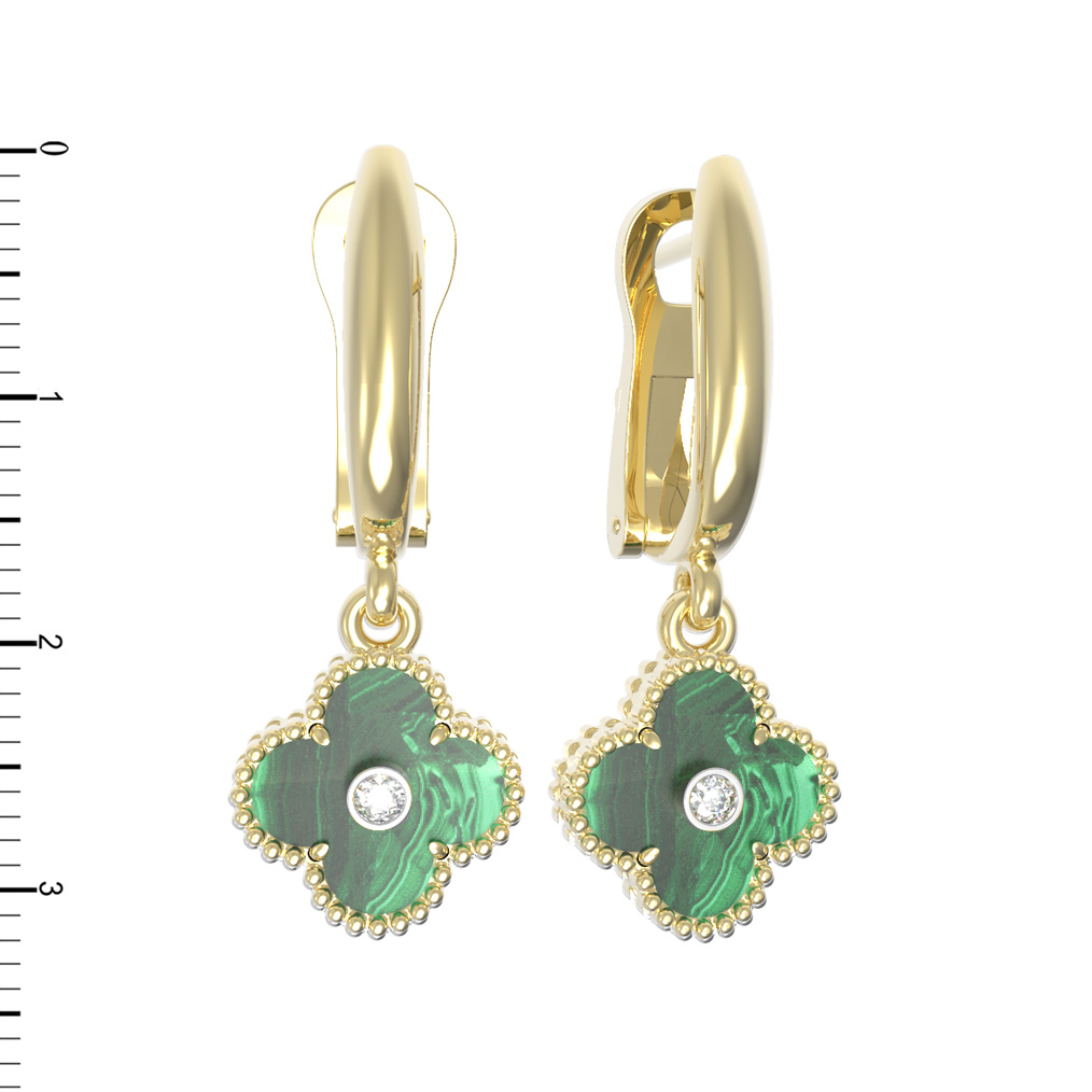 Серьги из лимонного золота 585 пробы c бриллиантами и малахитом