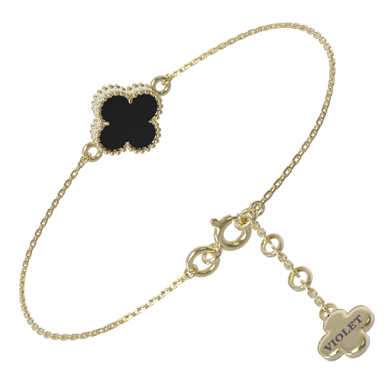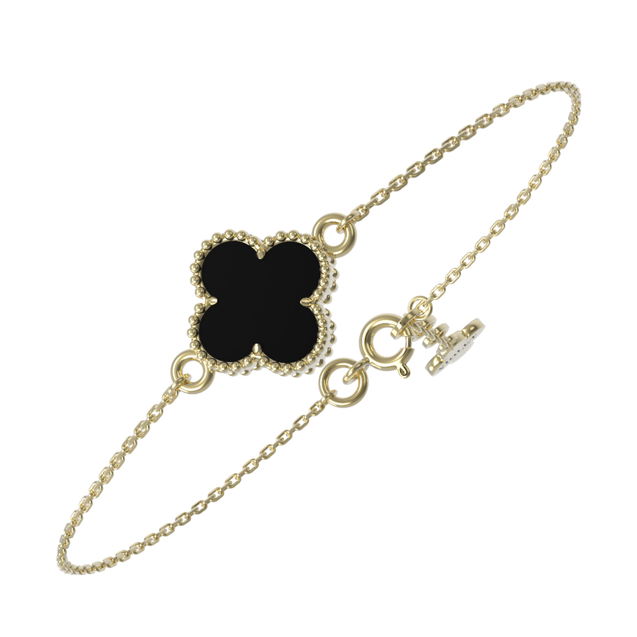 Изысканный браслет из лимонного золота 585 пробы станет ярким акцентом вашего образа. Это украшение, вдохновленное природными мотивами, представлено в элегантном дизайне «Клевер», который давно стал классикой ювелирного искусства. Центральным элементом композиции является одна крупная вставка из благородного оникса насыщенного черного цвета. Глубокий оттенок камня идеально сочетается с теплым, солнечным сиянием лимонного золота, создавая изысканный контраст, подчеркивающий безупречный вкус владельца.