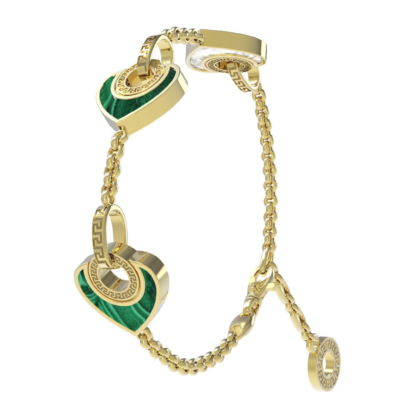 Браслет из лимонного золота 585 пробы c малахитом и перламутром