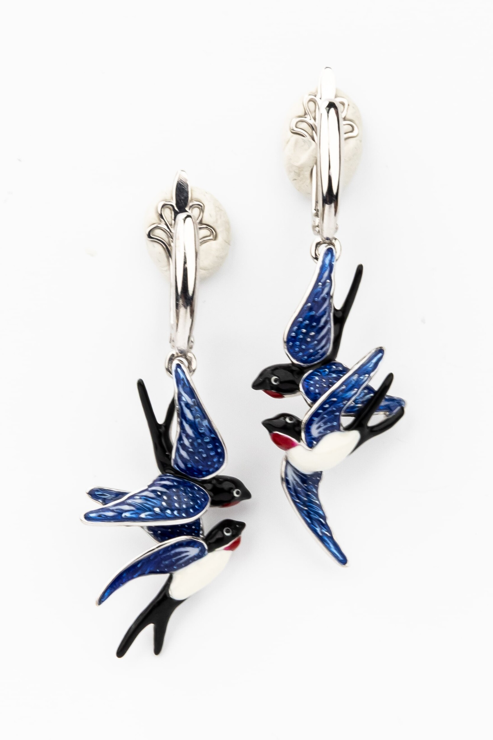 Эти изысканные серьги из белого золота 585 пробы станут ярким акцентом в вашем образе, подчеркивая индивидуальность и безупречный вкус. Дизайн изделия выполнен в оригинальной тематике: миниатюрные фигурки птиц — ласточек — грациозно парят, создавая ощущение легкости и свободы. Такой аксессуар идеально дополняет коллекцию De Luxe — Ласточки, воплощая собой мастерство ювелирного искусства.