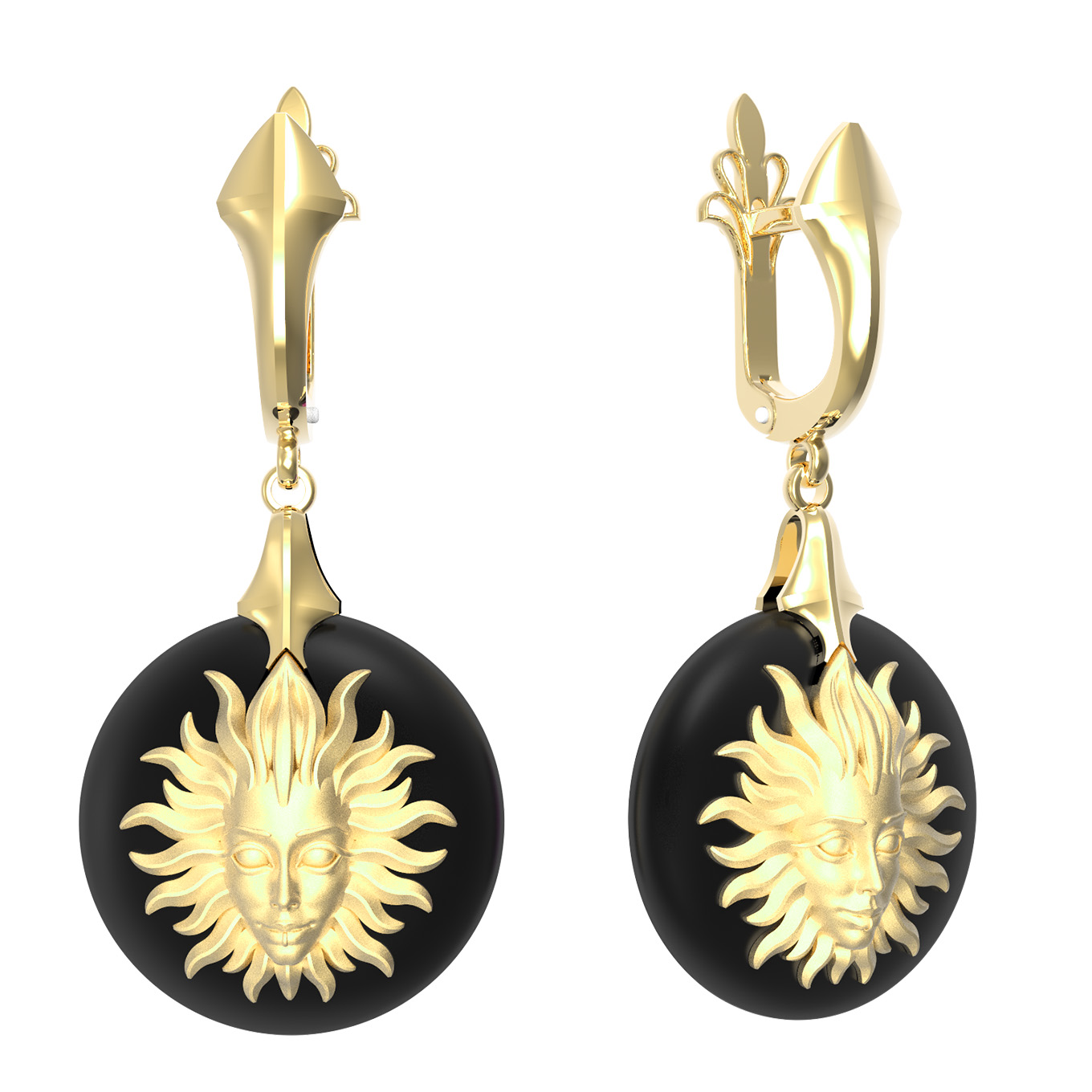 Эффектные серьги из коллекции De Luxe — Солнце станут ярким акцентом вашего образа, подчеркивая статус и безупречный вкус. Ювелирное изделие выполнено из благородного лимонного золота 585 пробы, чей теплый и насыщенный цвет эффектно контрастирует с глубоким черным оттенком вставок. Дизайнерская задумка, воплощенная в тематике солнце и луна, придает украшению мистический и одновременно роскошный вид, превращая серьги в настоящий артефакт, достойный внимания ценителей ювелирного искусства.