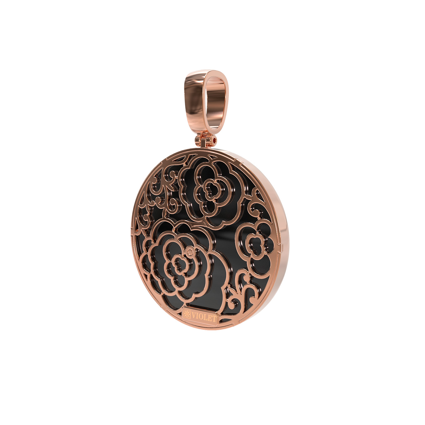 Центральным элементом композиции является круглая форма вставки, придающая украшению строгие и выверенные линии. Искусная работа мастеров подчеркивает красоту натуральных камней, чей цвет — перламутровый и черный — образует безупречный дуэт с теплым оттенком красного золота. Такое сочетание делает подвеску универсальным дополнением к повседневному или вечернему образу, подчеркивая индивидуальность владельца.